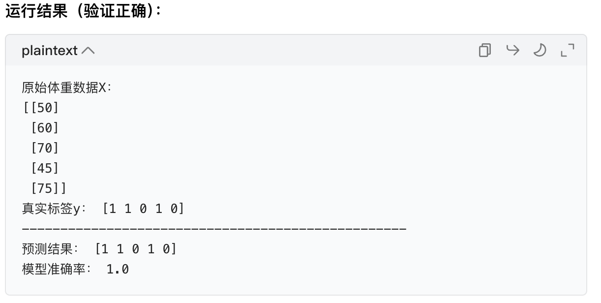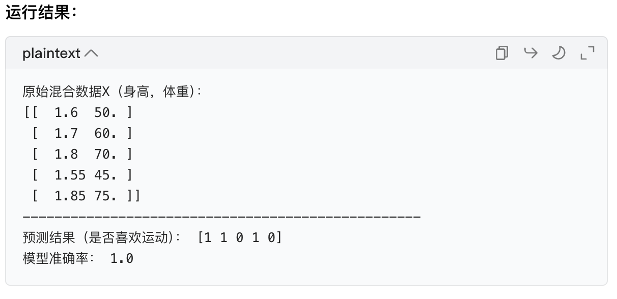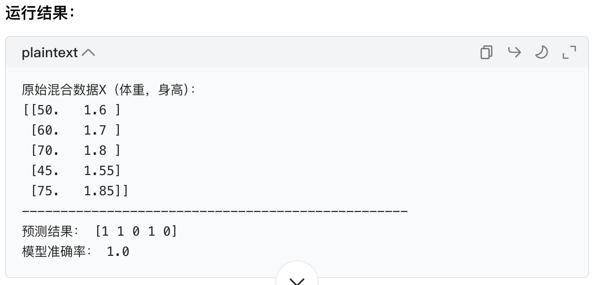 [1.7, 60]]) # 样本3:身高1.7m,体重60kg