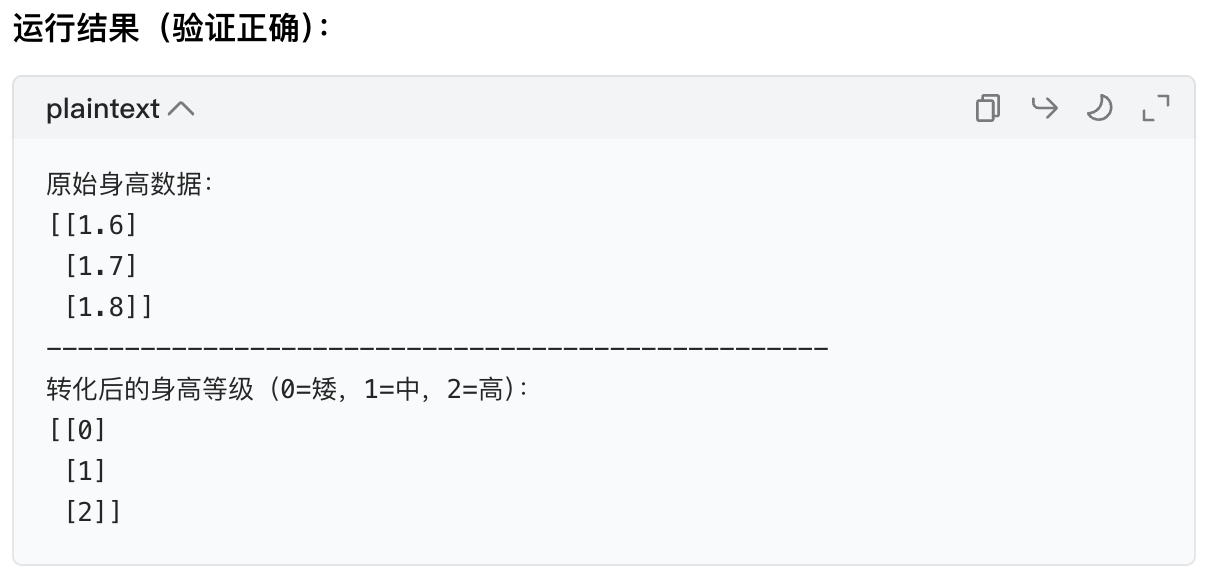 原始数据是真实的身高体重,加工后的数据变成了 "标准化数值"(均值为 0),这就是转化器的核心作用 ------只处理数据,不做预测。