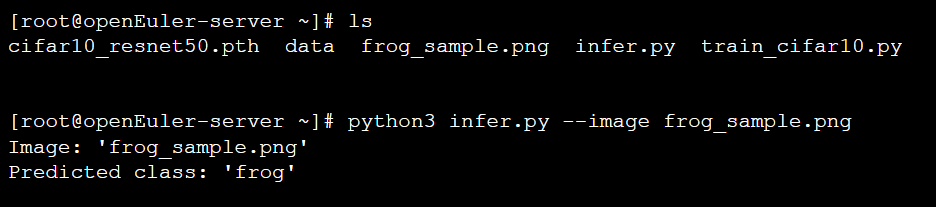 随着人工智能技术的飞速发展和应用普及,底层操作系统作为承载AI应用的关键基础设施,其重要性日益凸显。openEuler作为一款开源、稳定、安全的服务器操作系统,在支持多样性计算、提供原生AI能力方面展现出巨大潜力。本报告旨在深入探究在 openEuler 操作系统上构建、训练和部署一个完整AI图像分类应用的具体流程与可行性。报告以一个实际的图像分类任务(CIFAR-10数据集)为例,详细阐述了从服务器环境配置、AI开发环境容器化部署,到模型代码编写、训练、验证及推理的全过程。研究实践表明,openEuler凭借其稳定的内核、完善的社区生态以及对主流AI框架和容器技术的良好支持 能够为AI应用的开发与部署提供一个高效、可靠、易于管理的平台。本报告的实践操作与分析结果,可为在openEuler操作系统上进行AI应用开发的研究人员与工程师提供详实的参考。