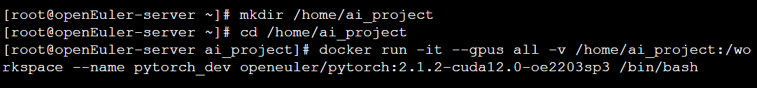 至此,一个隔离的、包含所有依赖的AI开发环境已在openEuler上准备就绪。