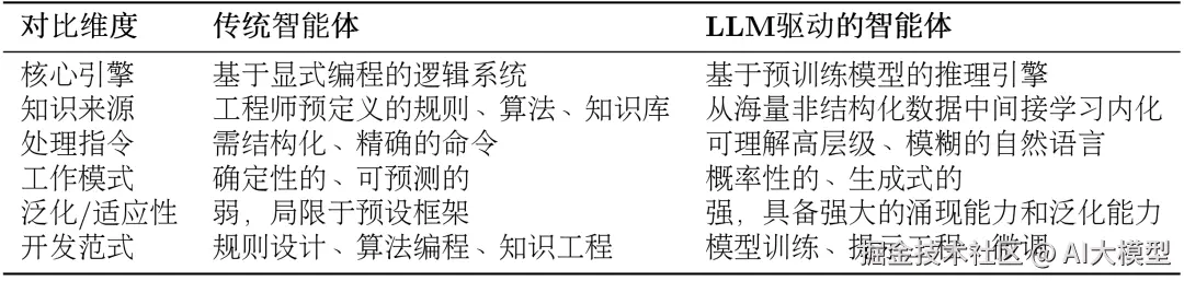 表 1.1 传统智能体与LLM驱动智能体的核心对比
