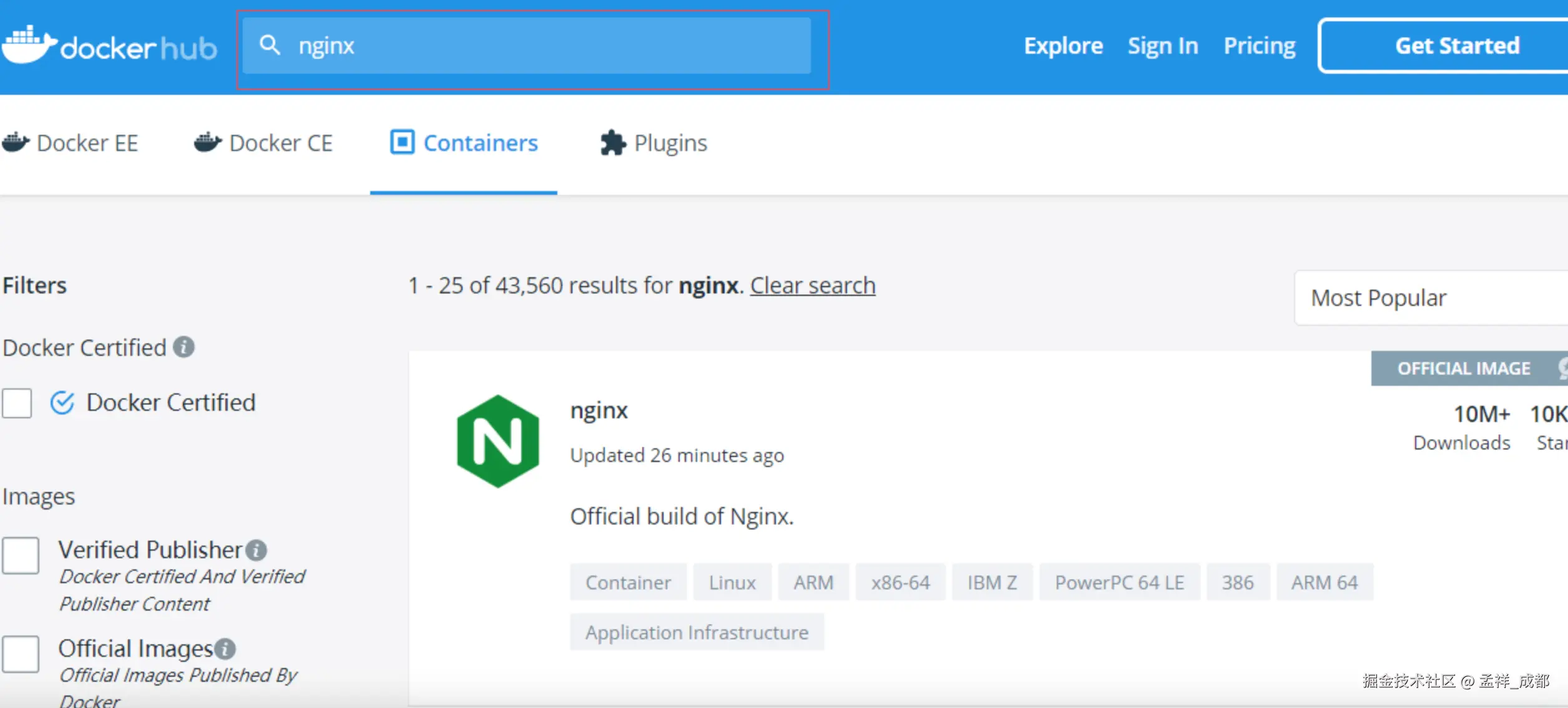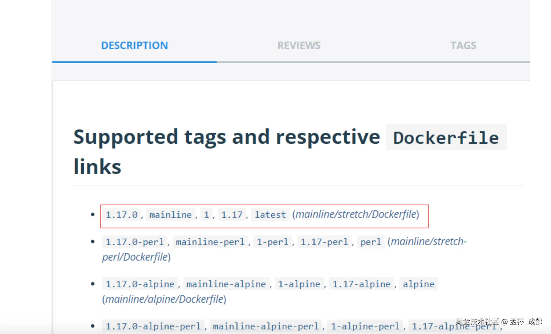 注:可以用 docker hub 来搜索支持的版本。方法如下: