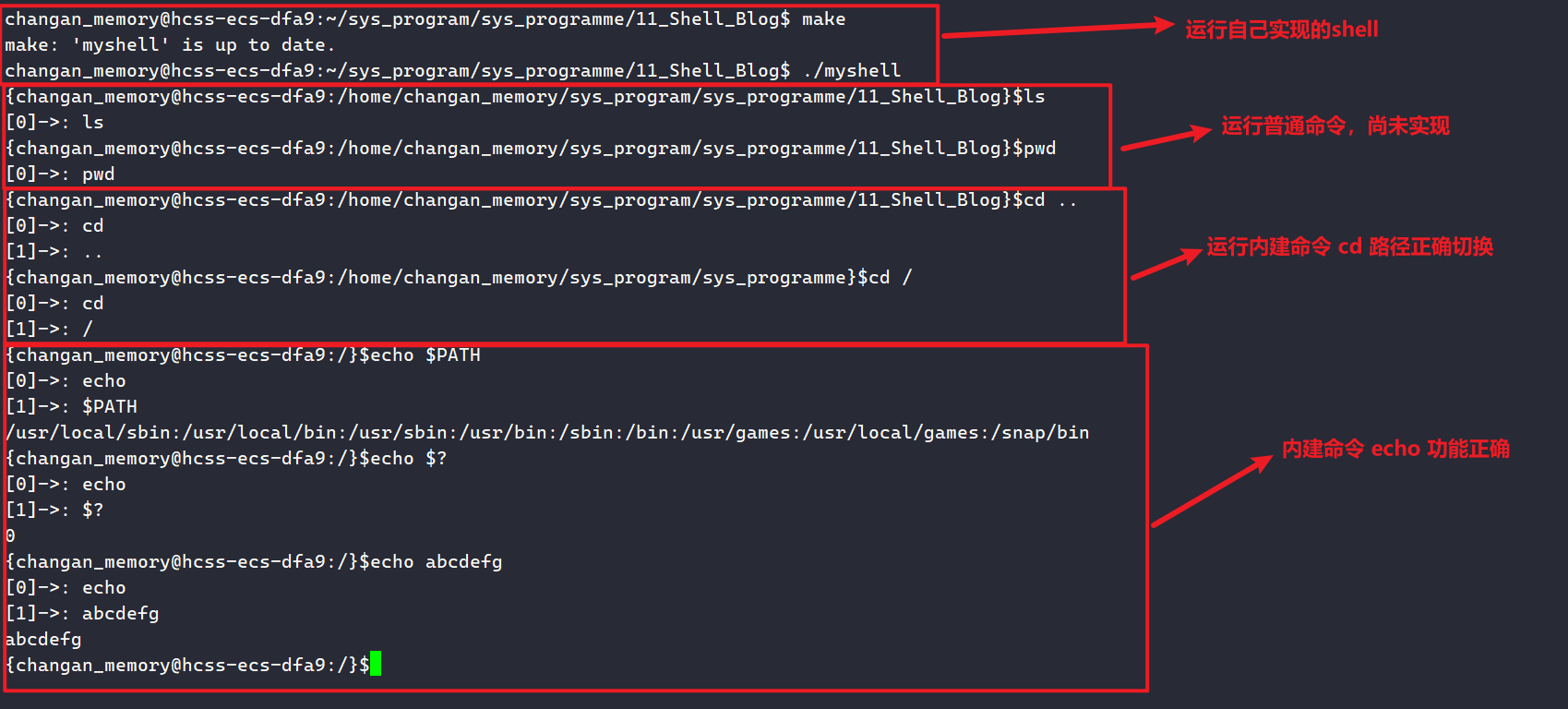 这些实现不仅让我们拥有了一个能真实工作的 Shell,更重要的是,它让整个 Linux 运行机制不再抽象,而是变得可触摸、可理解、可实验。
