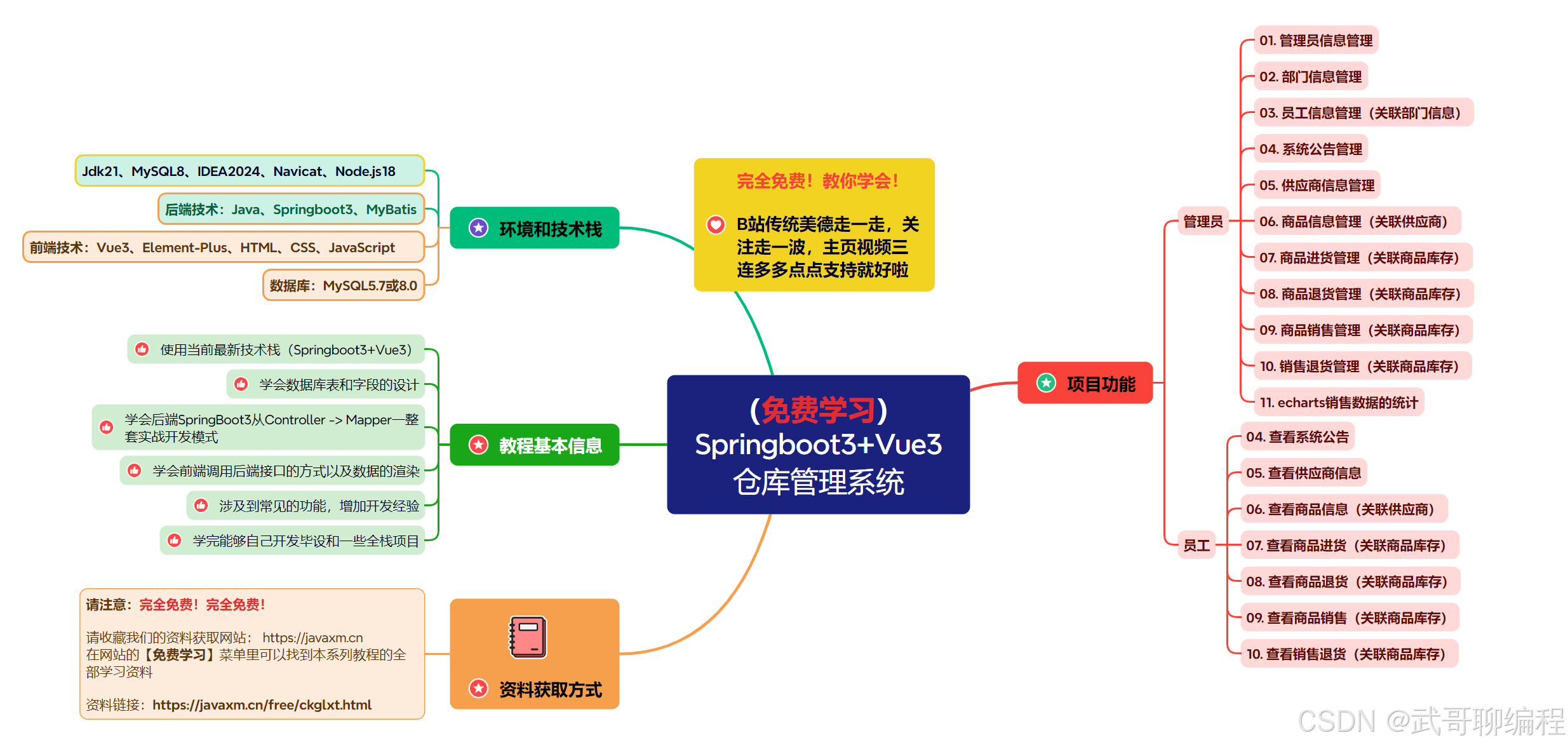 大家好,我是武哥,最近给大家手撸了一个基于SpringBoot3+Vue3的免费项目仓库管理系统 ,经典项目,不一样的教程,可以学到很多技能