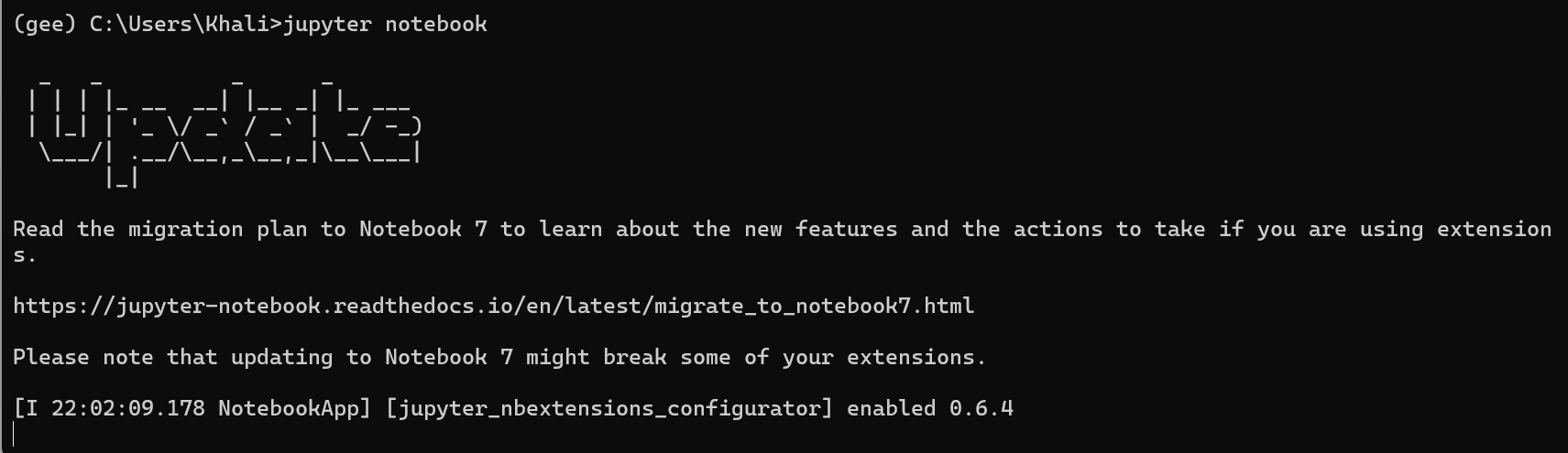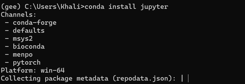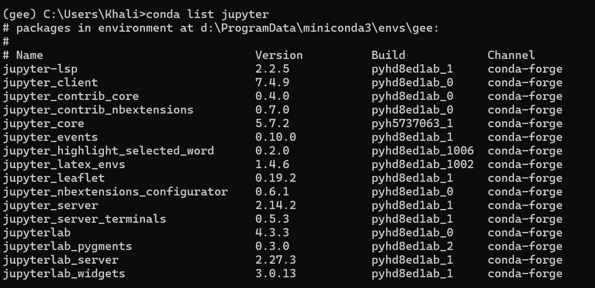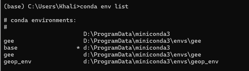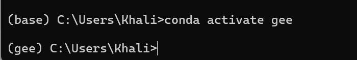 进入你需要的conda虚拟环境,比如使用命令conda activate gee进入gee环境(如果要进入base环境,则跳过这一步):