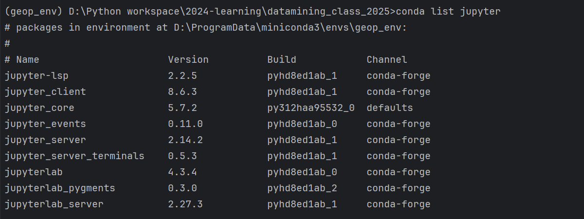 2)使用命令conda list jupyter,检查环境中是否有jupyter相关的包: