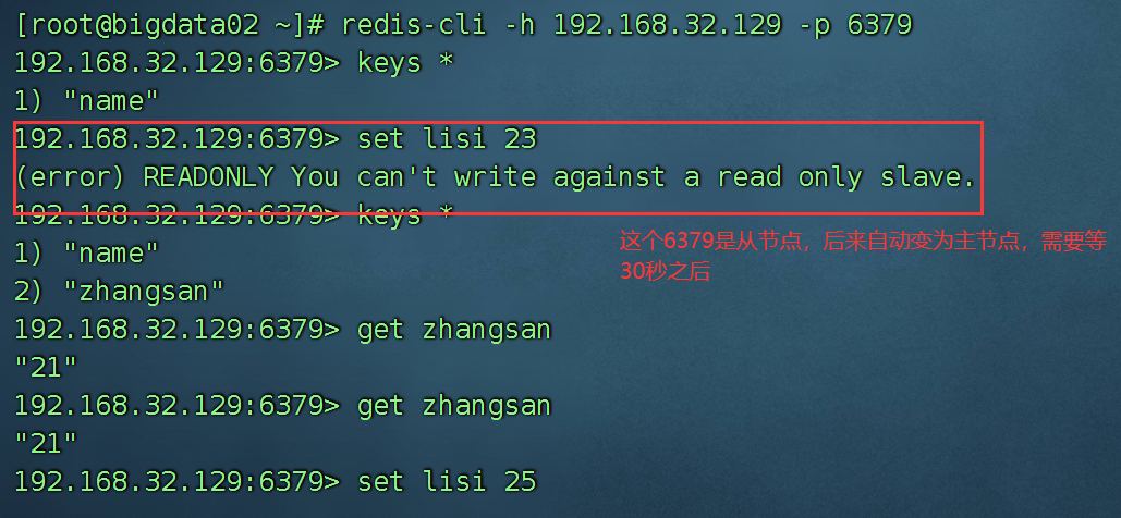 相当于以前的主节点变从节点,从节点自动变主节点,而且两边数据会同步。记得不要忘记设置主节点密码。