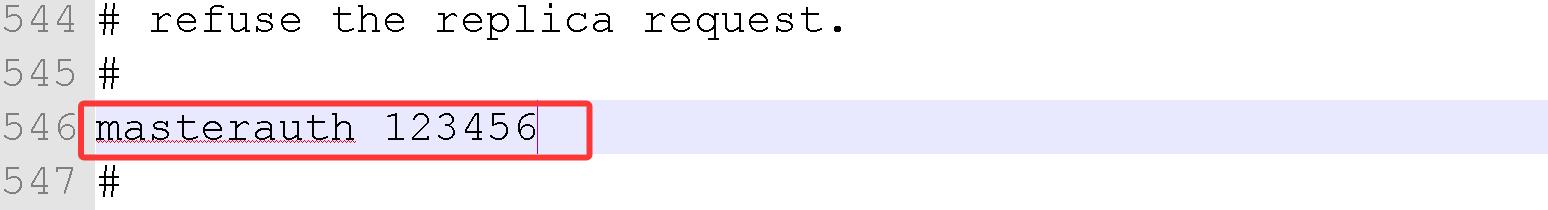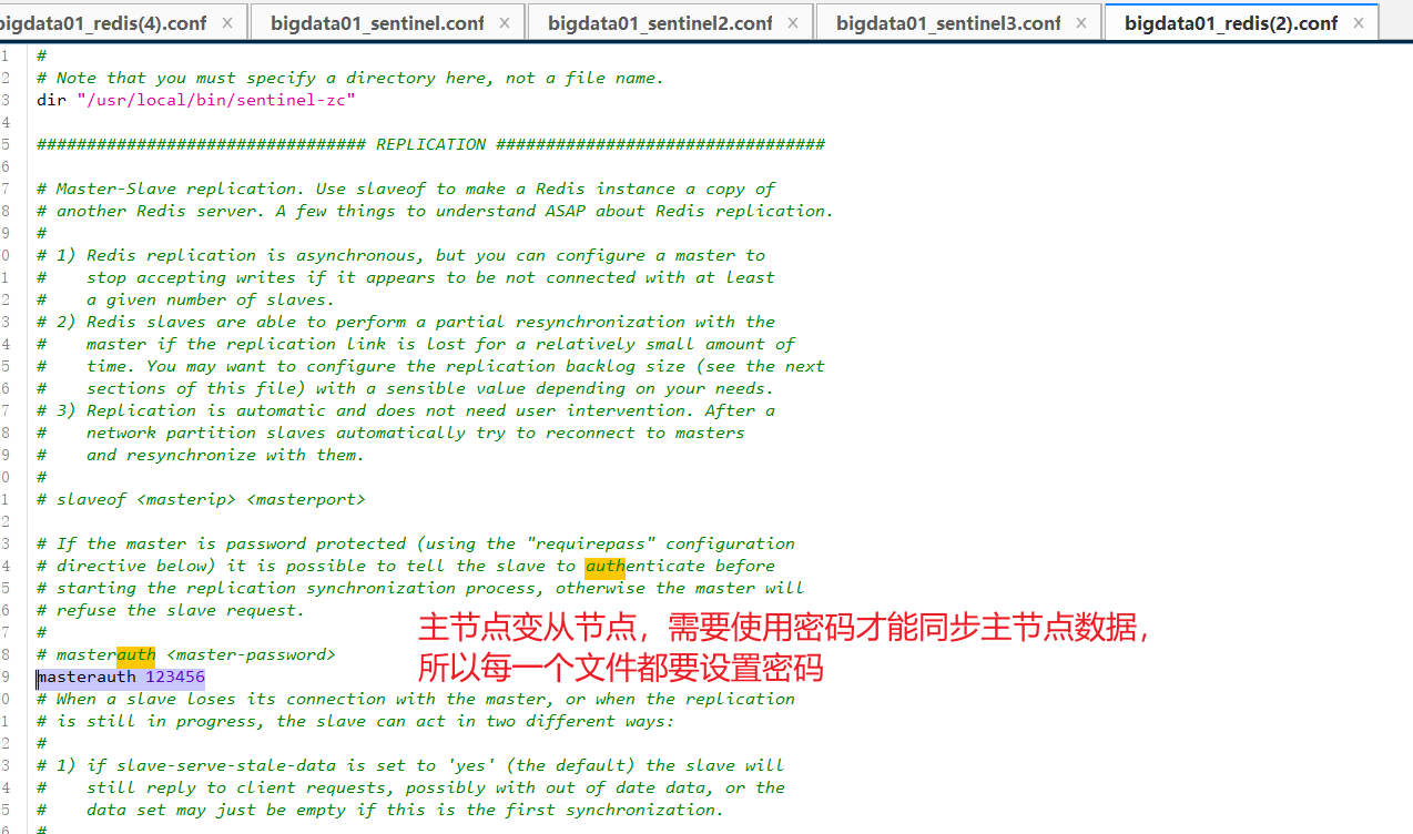 接着在主节点的 redis.conf 下,配置从节点的 redis 的密码: