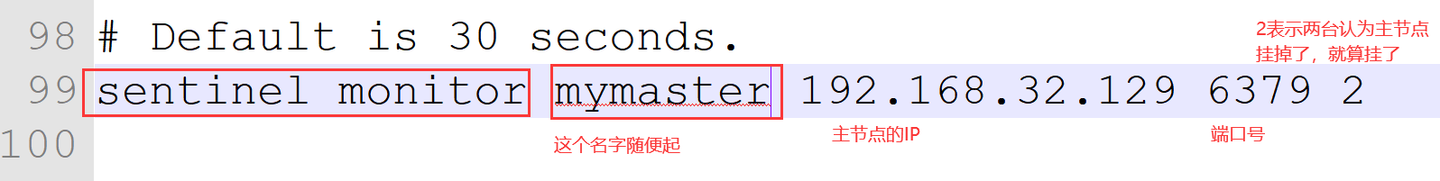 谨记: 以上这个语句必须写在 sentinel monitor mymaster 192.168.233.128 6379 2