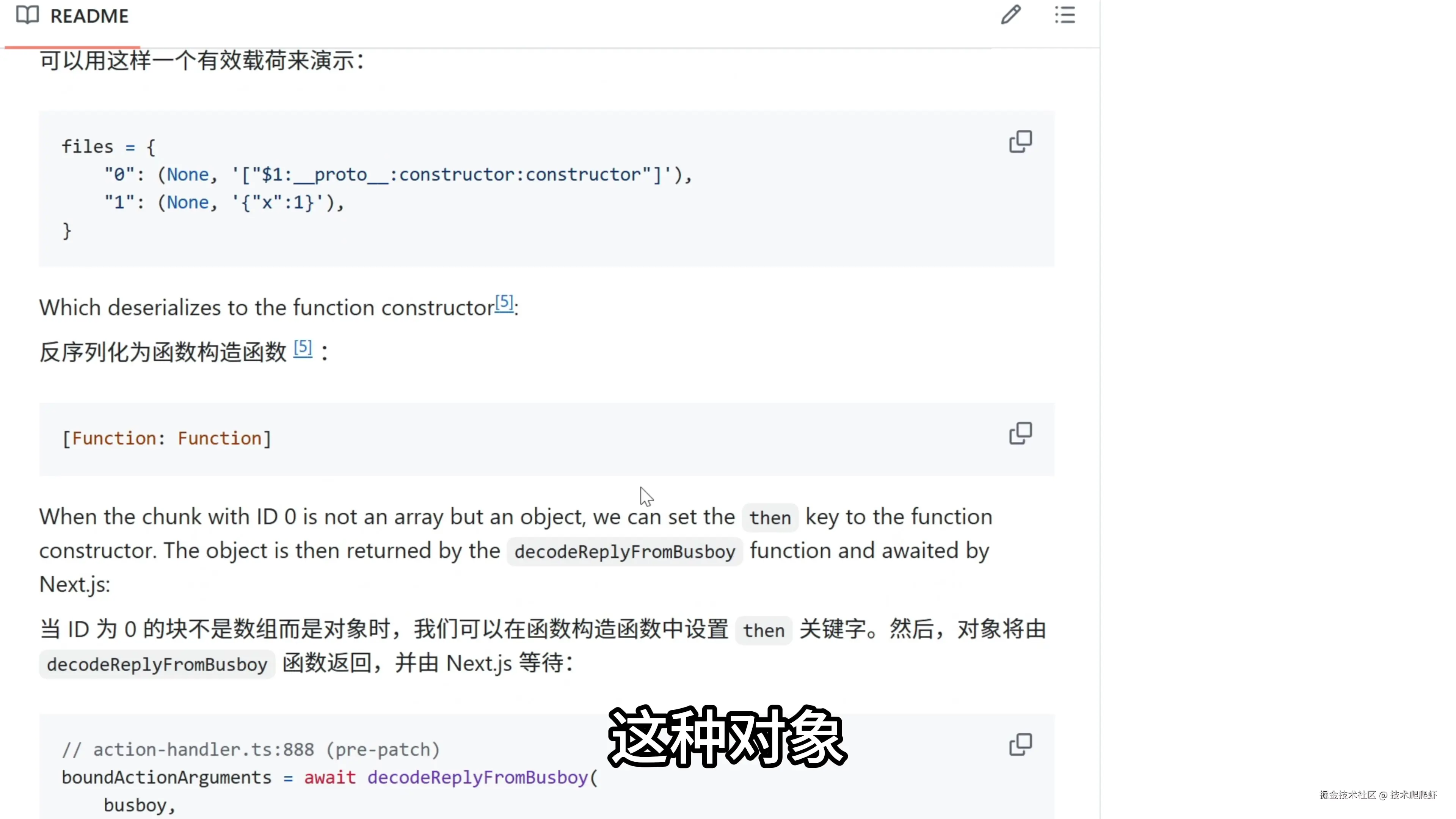 在我们用的这个 Python 脚本的仓库里面,有关于这个漏洞的详细解释。我不是 React 专家,这里我只能简单总结一下。我们看到,React 使用一种叫做 flight 的协议,把客户端的数据序列化后传到服务器,每一行都是一个数据块。