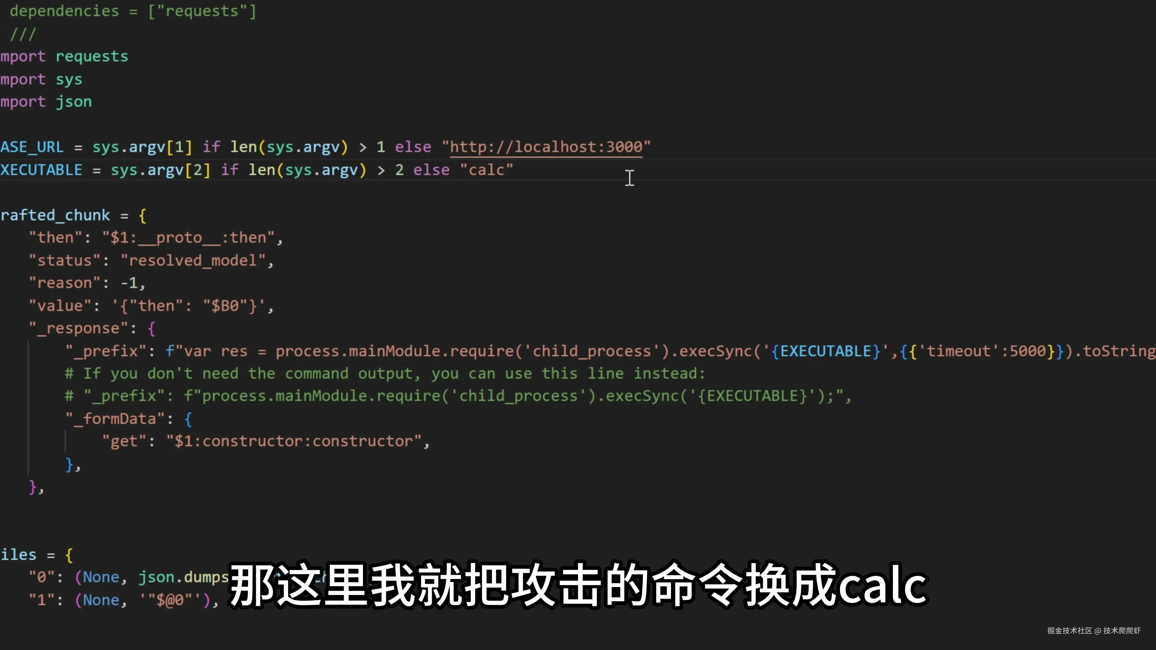 找到这个文件以后,在 GitHub 这边点击 download,把这个 Python 脚本下载下来打开。在第 9 行这里填写一个攻击命令,比如在 Windows 上有一个命令 calc,执行这个命令就可以打开电脑上的计算器。那这里我就把攻击的命令换成 calc。