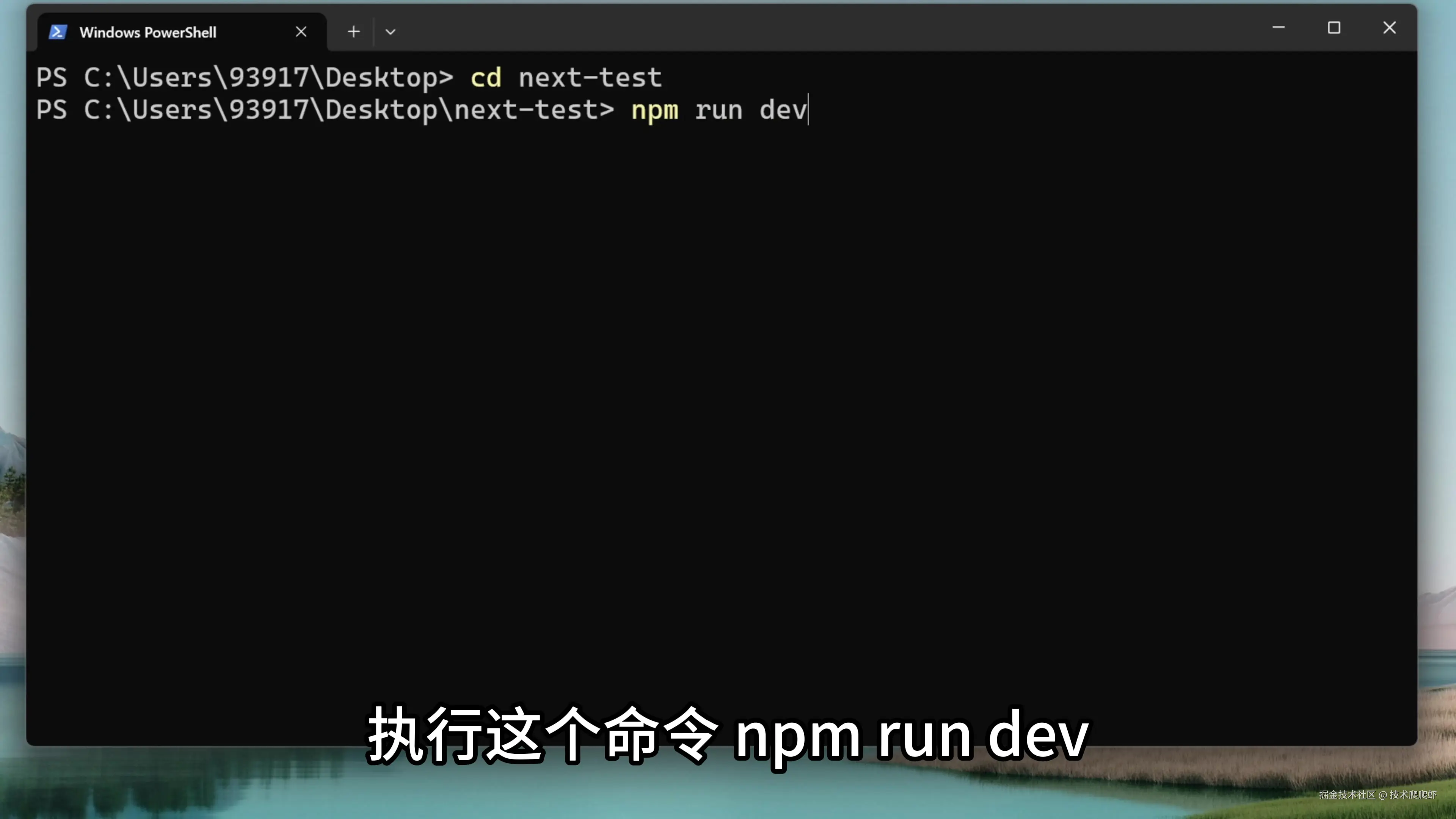 然后我们进入刚才创建的文件夹,执行这个命令 npm run dev,把这个 Next.js 工程启动起来。