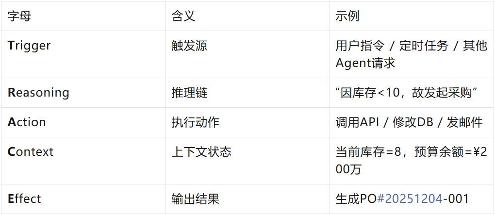 效果:事故复盘时,3分钟定位到------"12月3日14:22,Agent-PUR-09因缓存失效,误读库存为0,触发紧急采购200台服务器------而实际库存为198。"