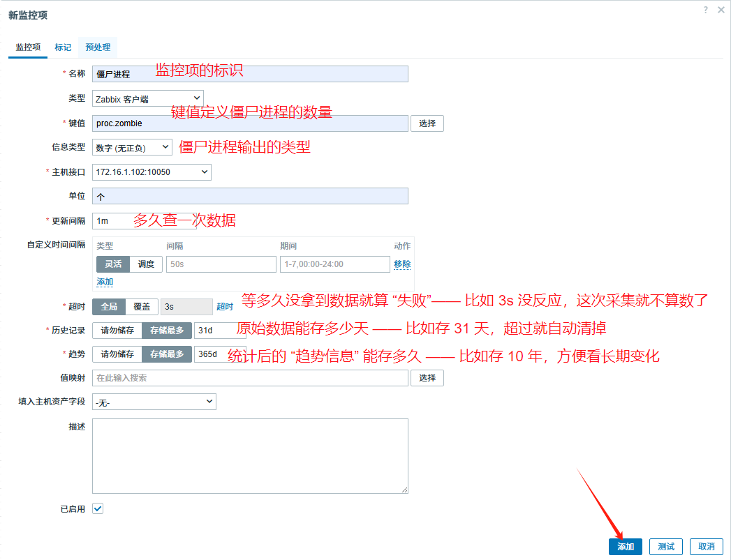 | 监控项(Item) | Zabbix 监控的具体指标,如 CPU 利用率、内存使用率、TCP 连接数等 |
