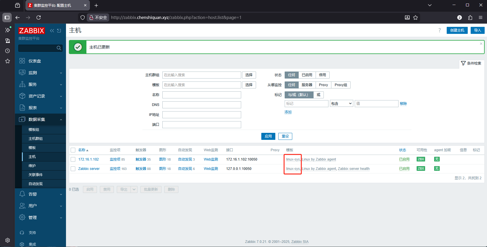| 内部配置数据流 | 告警触发的核心逻辑链 | 配置顺序:主机→监控项→触发器→动作; 模板可简化操作;支持灵活配置自定义告警(如 CPU 负载过高通知) |