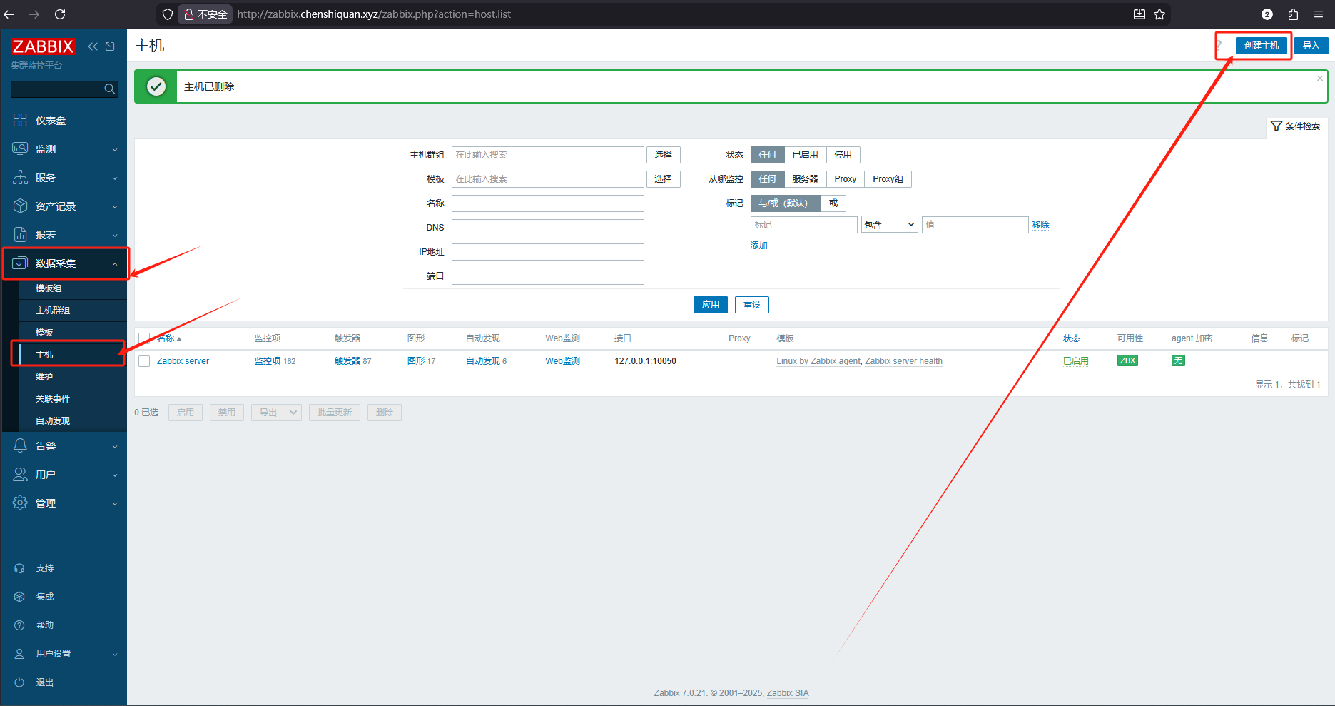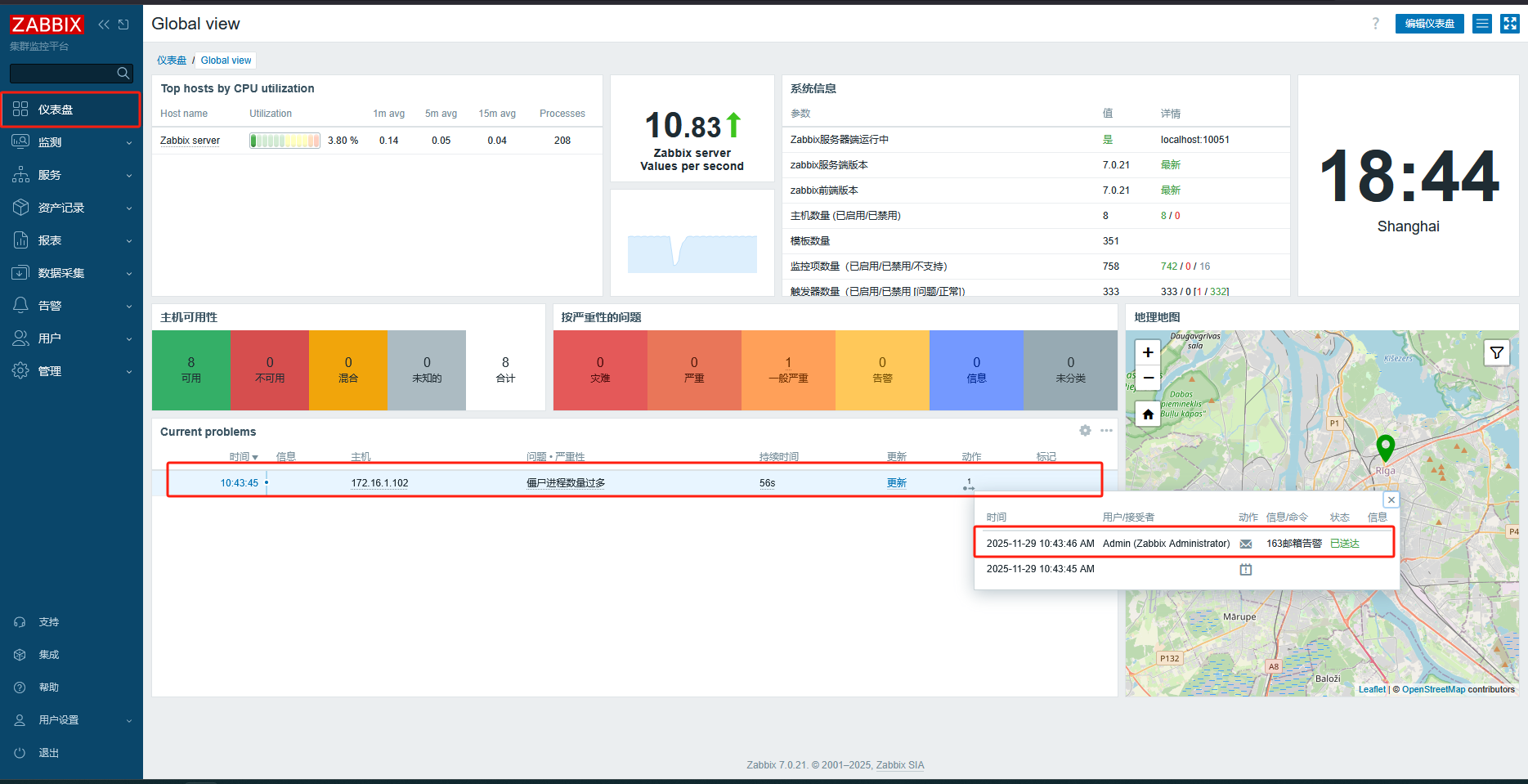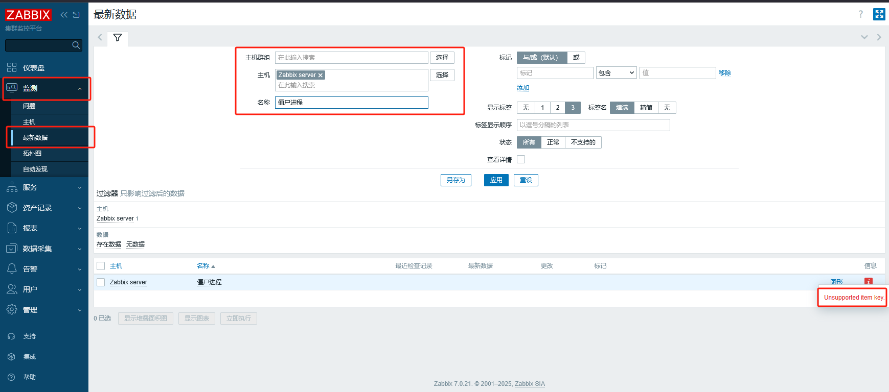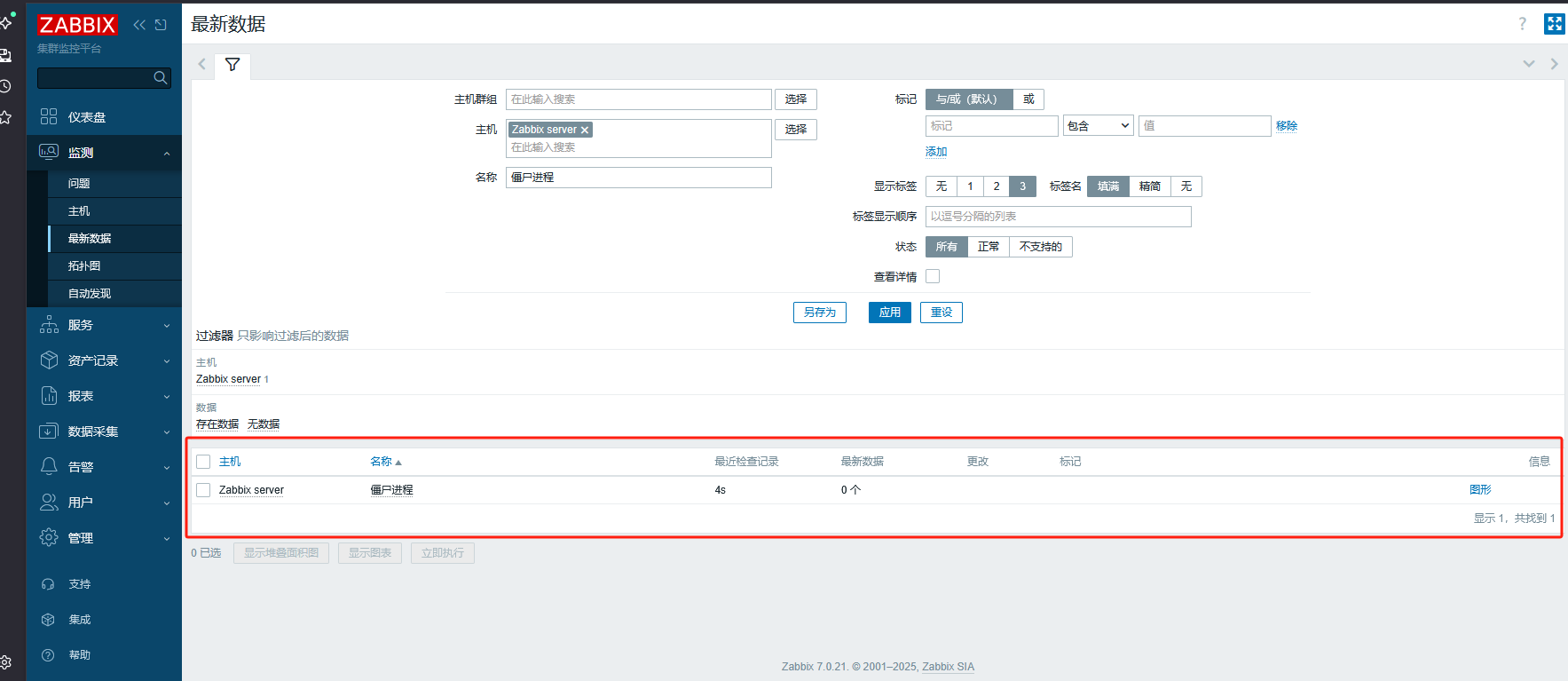 | Zabbix Server | Zabbix 核心中枢 | 接收 Agent 上报数据;存储配置 / 统计 / 操作信息; 作为告警中心发送异常通知; 功能分解为 Server、Web 前端、数据库三部分; 配置更改需 1-2 分钟同步(缓存机制) |