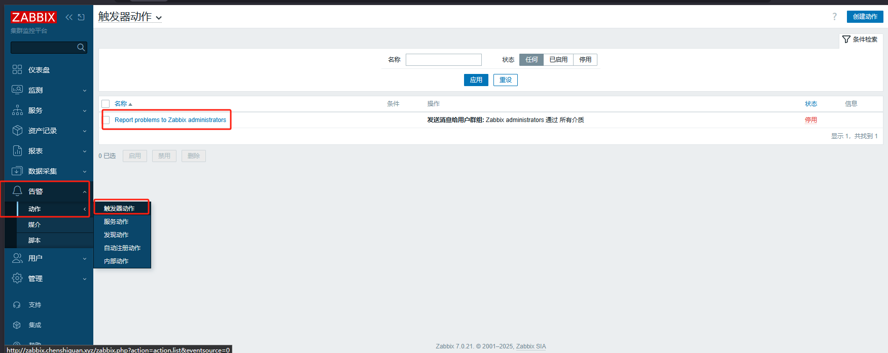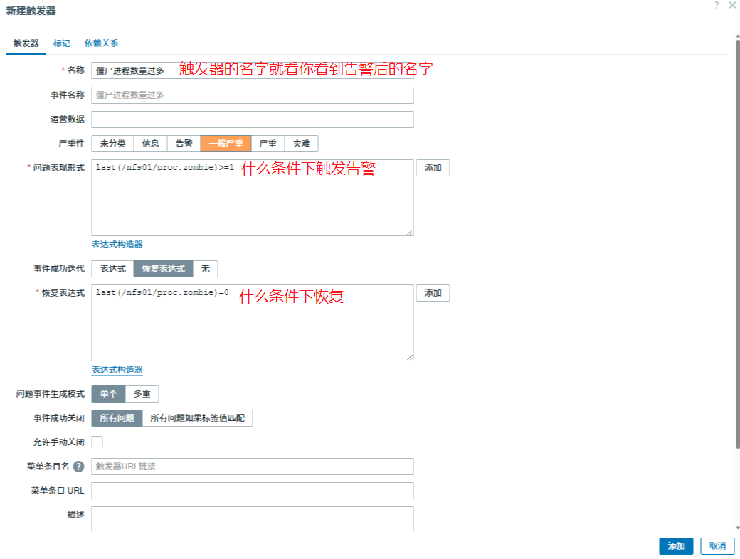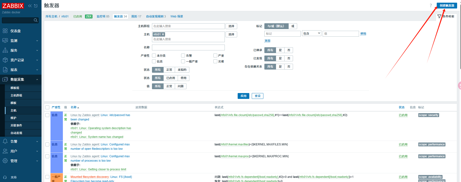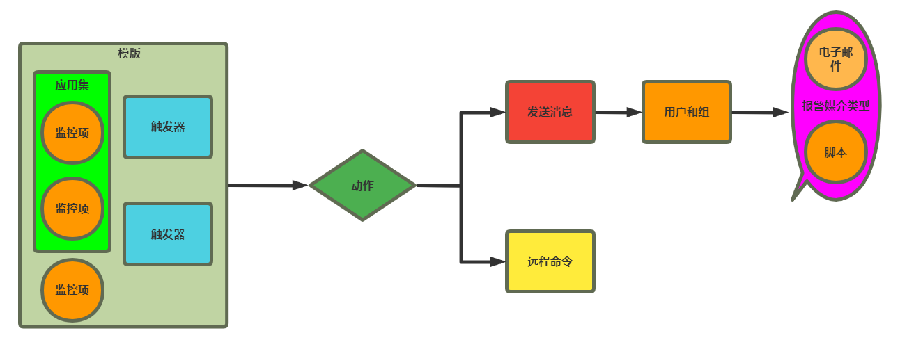 | 触发器(Trigger) | 触发告警的条件表达式(如磁盘利用率超过 80%),满足条件会产生触发事件 |