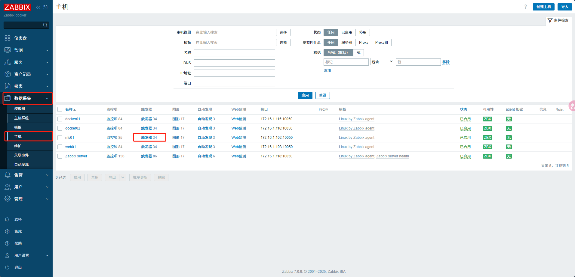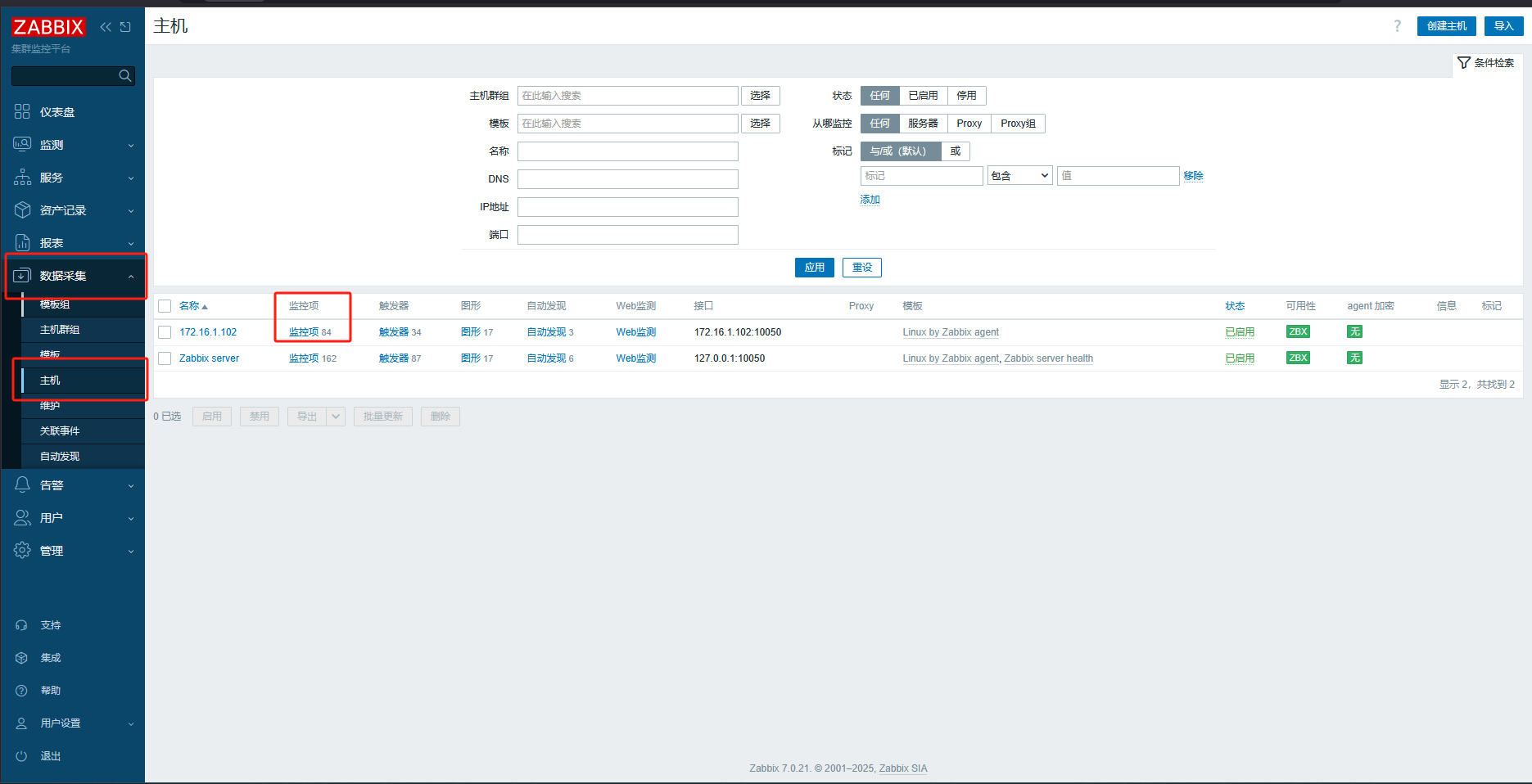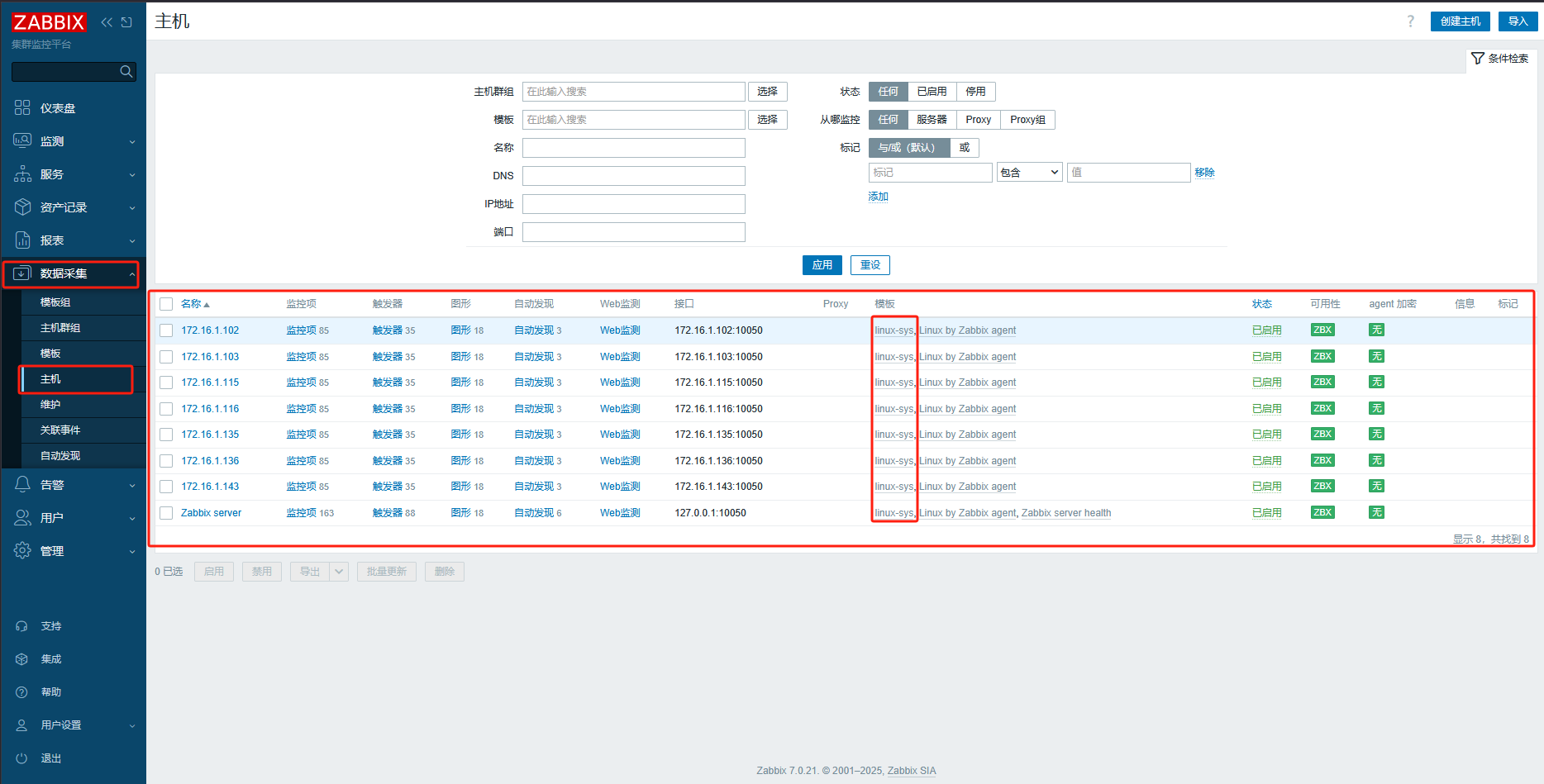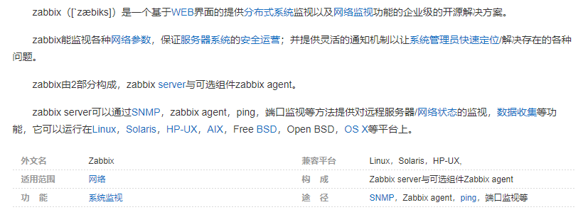 | 数据采集 | 采集历史 / 趋势数据;支持 SNMP/IPMI/JMX/VMware 等协议;自定义检查;按间隔采集;通过 Server/Proxy/Agents 执行 |