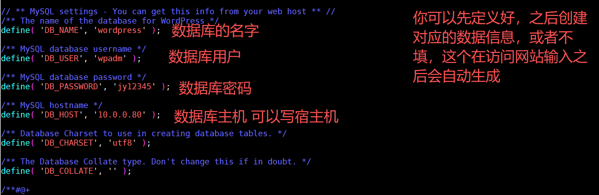 #复制wp-config-sample.php为wp-config.php文件,修改编辑里面的内容