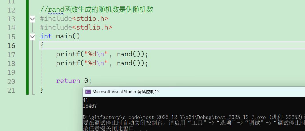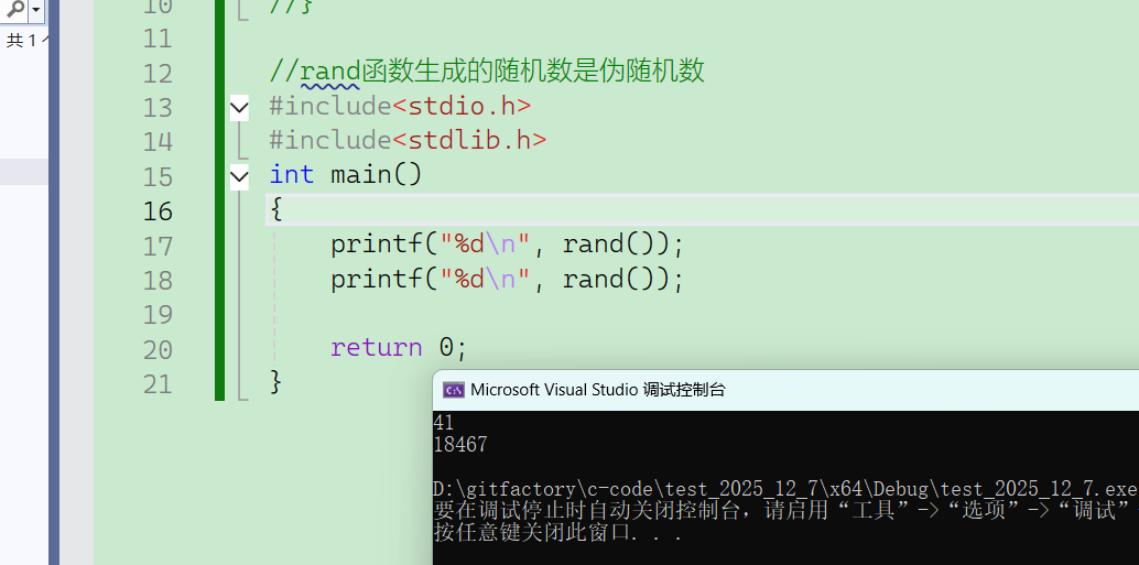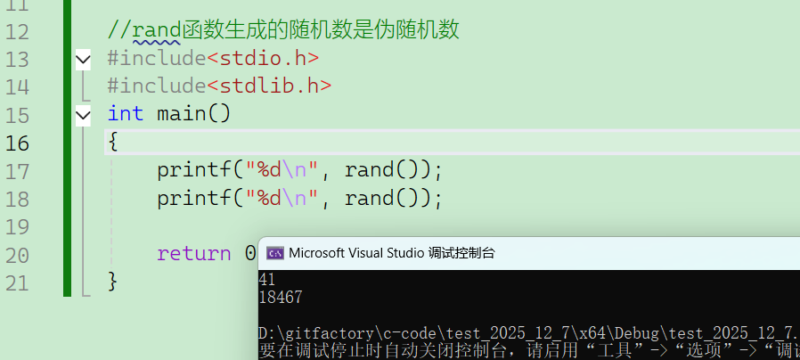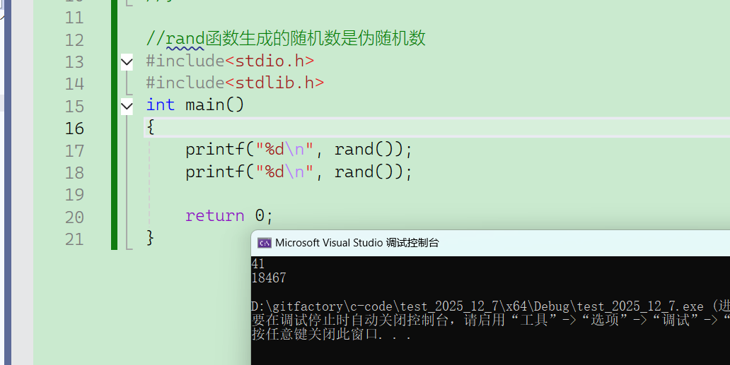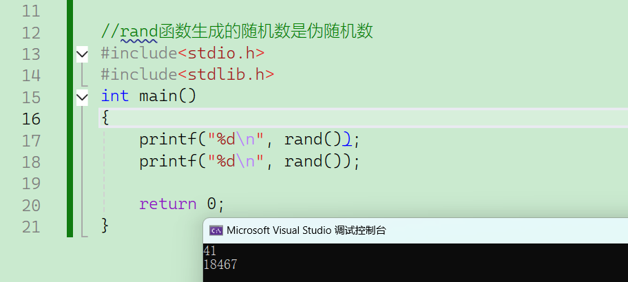 //srand(1);//这句话不写时,让rand()生成随机数时,默认调用的就是srand(1)