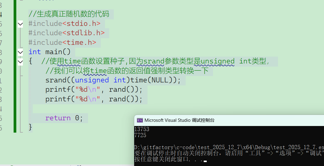 { //使用time函数设置种子,因为srand参数类型是unsigned int类型,