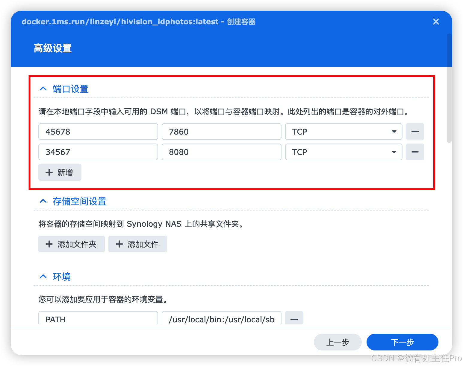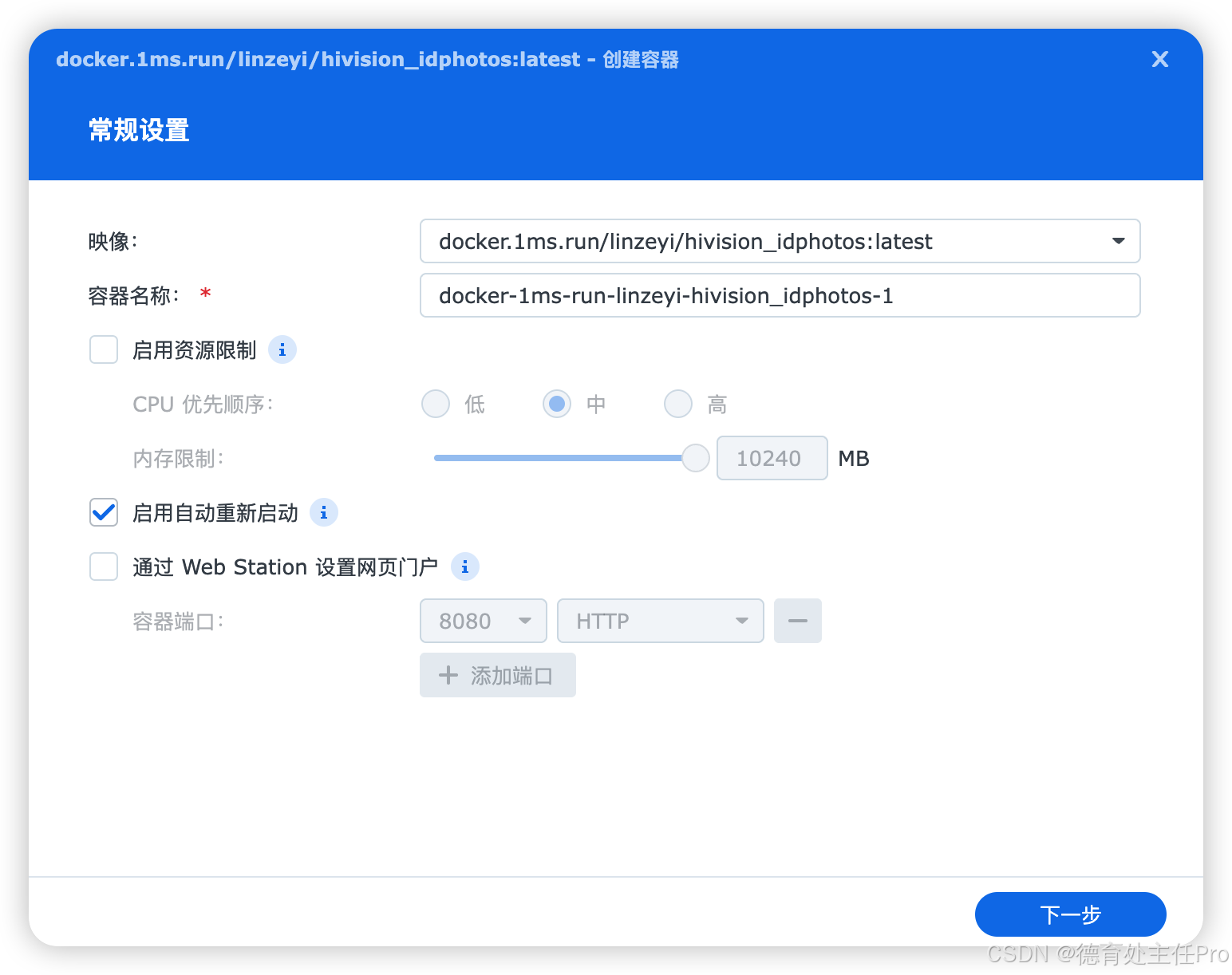 8080 的映射可以不填,这个端口是给接口用的,如果你只是使用 HivisionIDPhotos 的话不填这个映射端口也行。