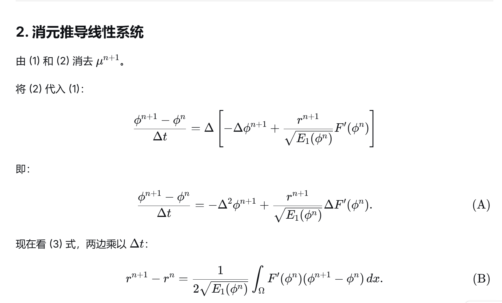 利用方程(1.1b): μ = − λ ( Δ ϕ − g ( ϕ ) ) \mu = -\lambda(\Delta\phi - g(\phi)) μ=−λ(Δϕ−g(ϕ)),代入后: