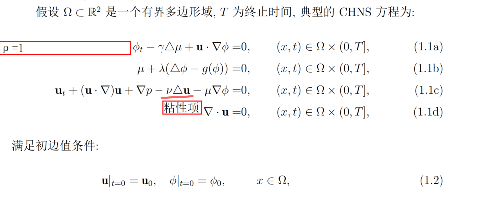 - 边界条件 : ∂ ϕ ∂ n = ∂ μ ∂ n = 0 , u = 0 \frac{\partial\phi}{\partial n} = \frac{\partial\mu}{\partial n} = 0, u = 0 ∂n∂ϕ=∂n∂μ=0,u=0 (在边界上)