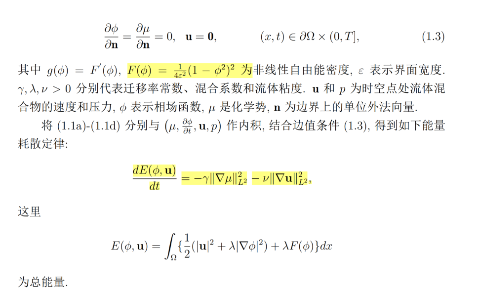 - 总能量定义 : E ( ϕ , u ) = ∫ Ω [ 1 2 ( ∣ u ∣ 2 + λ ∣ ∇ ϕ ∣ 2 ) + λ F ( ϕ ) ] d x E(\phi,u) = \int_\Omega \left[\frac{1}{2}(|u|^2 + \lambda|\nabla\phi|^2) + \lambda F(\phi)\right]dx E(ϕ,u)=∫Ω[21(∣u∣2+λ∣∇ϕ∣2)+λF(ϕ)]dx