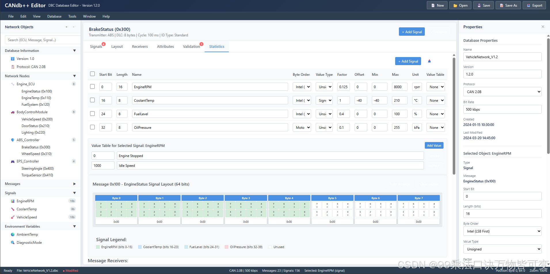 如果说DBC文件是汽车通信的宪法,那么CANdb++ Editor就是制定、修订和解释这部宪法的最高立法与司法机构。作为一款专业的桌面级应用,它为工程师提供了从零开始构建、维护和验证复杂DBC数据库所需的全套工具。