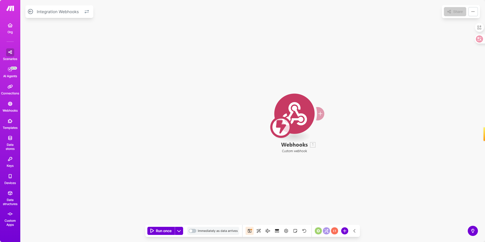 设定触发器 (Trigger):选择一个开始节点,例如 Webhook (接收外部请求)、Cron (定时运行)