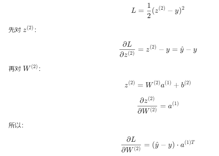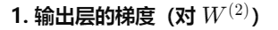 # dL/dW2 = dL/dz2 * da1/dW2 = dL/dz2 * a1^T