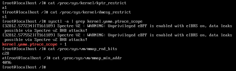 openEuler内核安全配置完善,各项关键安全特性均已正确启用,内核信息保护、进程隔离和内存安全机制均达到企业级安全要求,为系统整体安全提供了坚实保障。