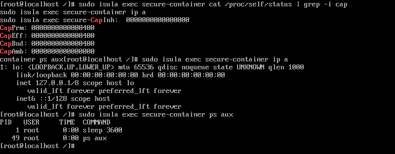 sudo isula exec secure-container cat /proc/self/status | grep -i cap