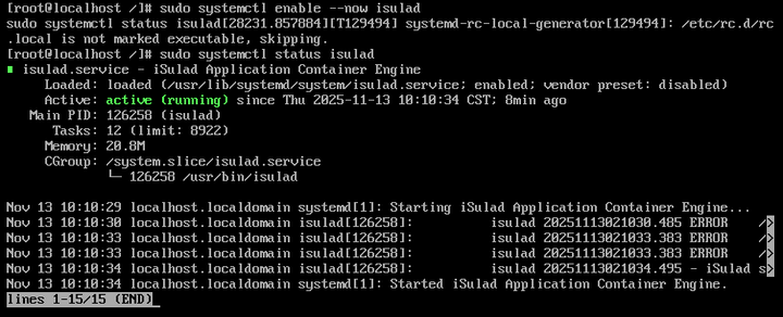 sudo systemctl enable --now isulad