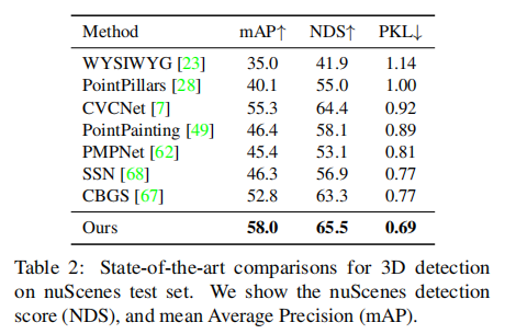 表 2 显示,CenterPoint 在 nuScenes 测试集上以显著优势领先: