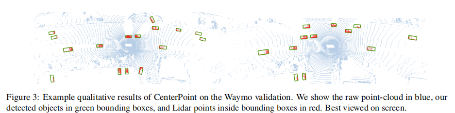 Waymo 验证集:VoxelNet 编码器下,Center-based 方法平均 mAPH 提升 4.3%;PointPillars 编码器下提升 4.5%;可视化结果如图 3 所示。