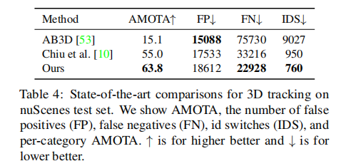 - nuScenes 测试集(表 4):AMOTA 达到 63.8(超此前最佳方法 8.8%),同时 False Negatives(漏检)和 ID Switches(ID 切换)显著降低。