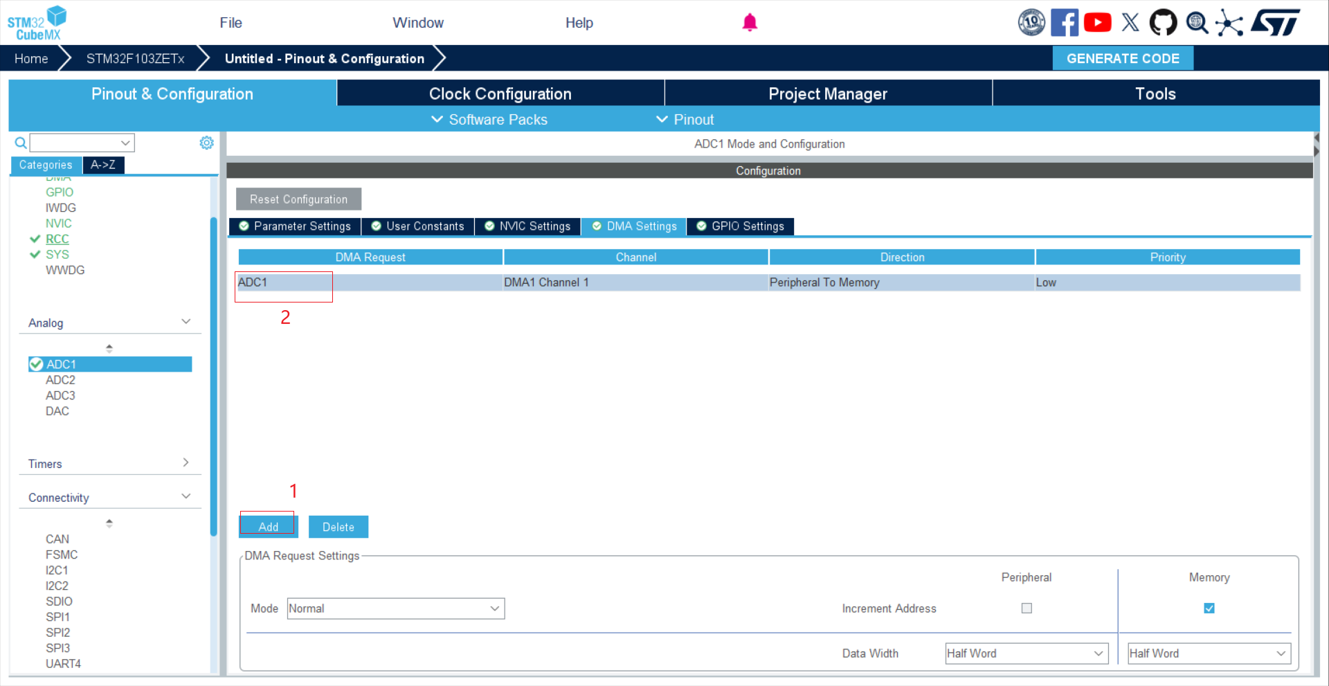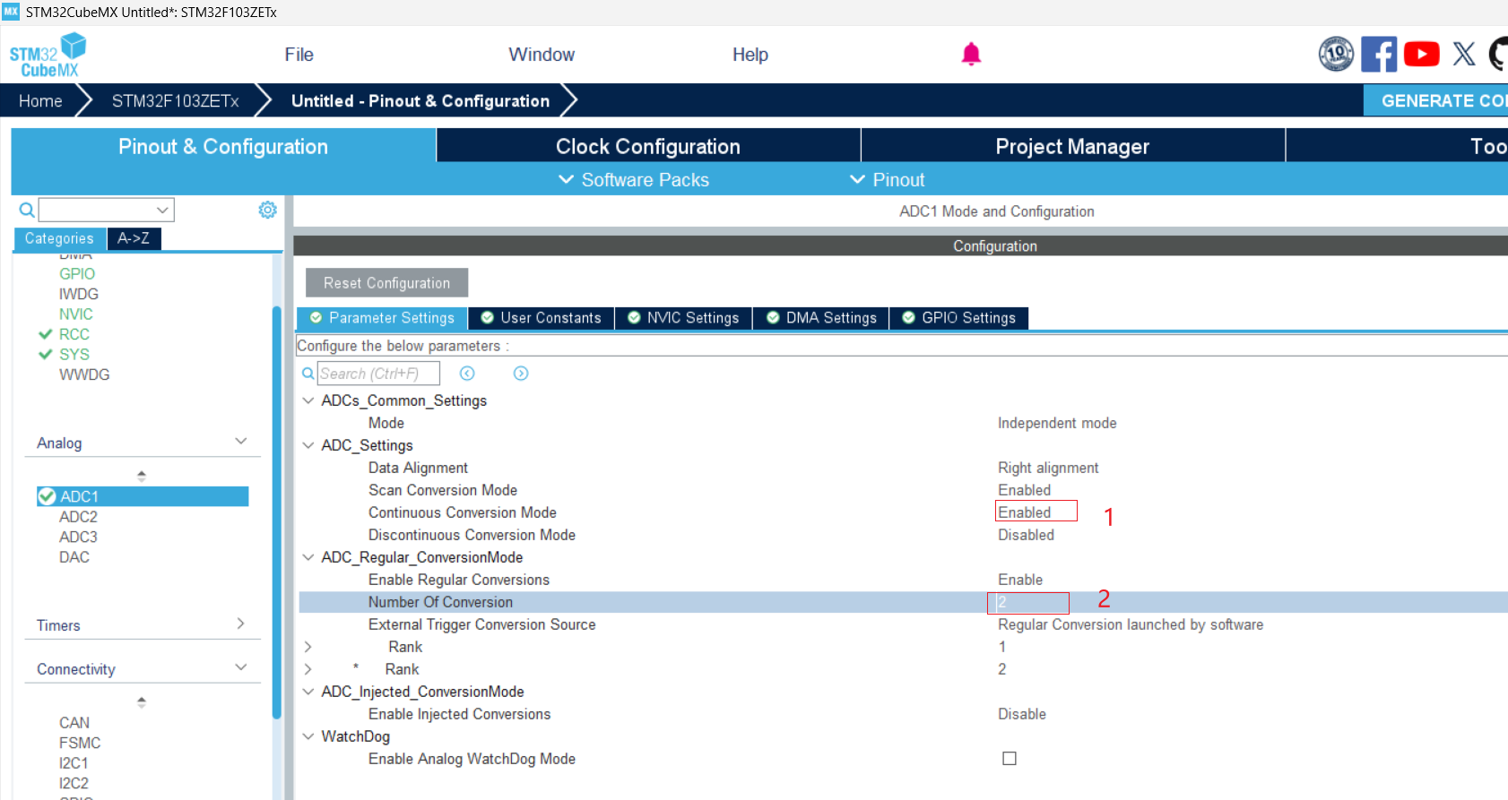 HAL_ADC_Start_DMA(&hadc1, (uint32_t *)data, 2);