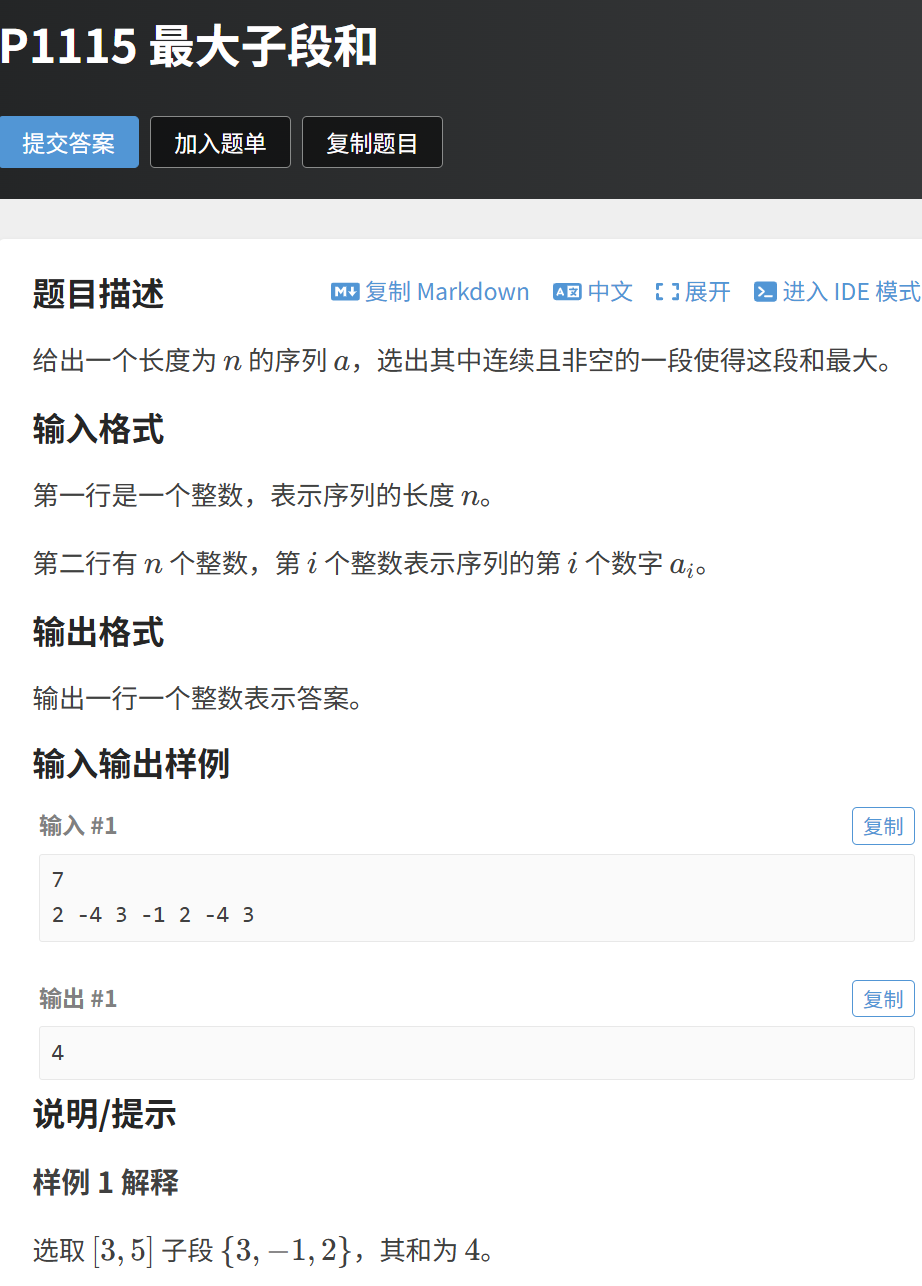 - 洛谷 P1115 最大子段和(二刷优化版);