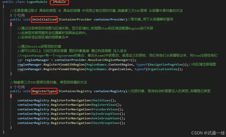 Prism框架中,模块 可以注册到导航菜单Navigation ,也可以注册到区域Region ,根据实际业务需要进行选择。Region可以更加方便的进行模块化布局等。在普通容器控件中,增加区域是prism:RegionManager.RegionName="区域名称"