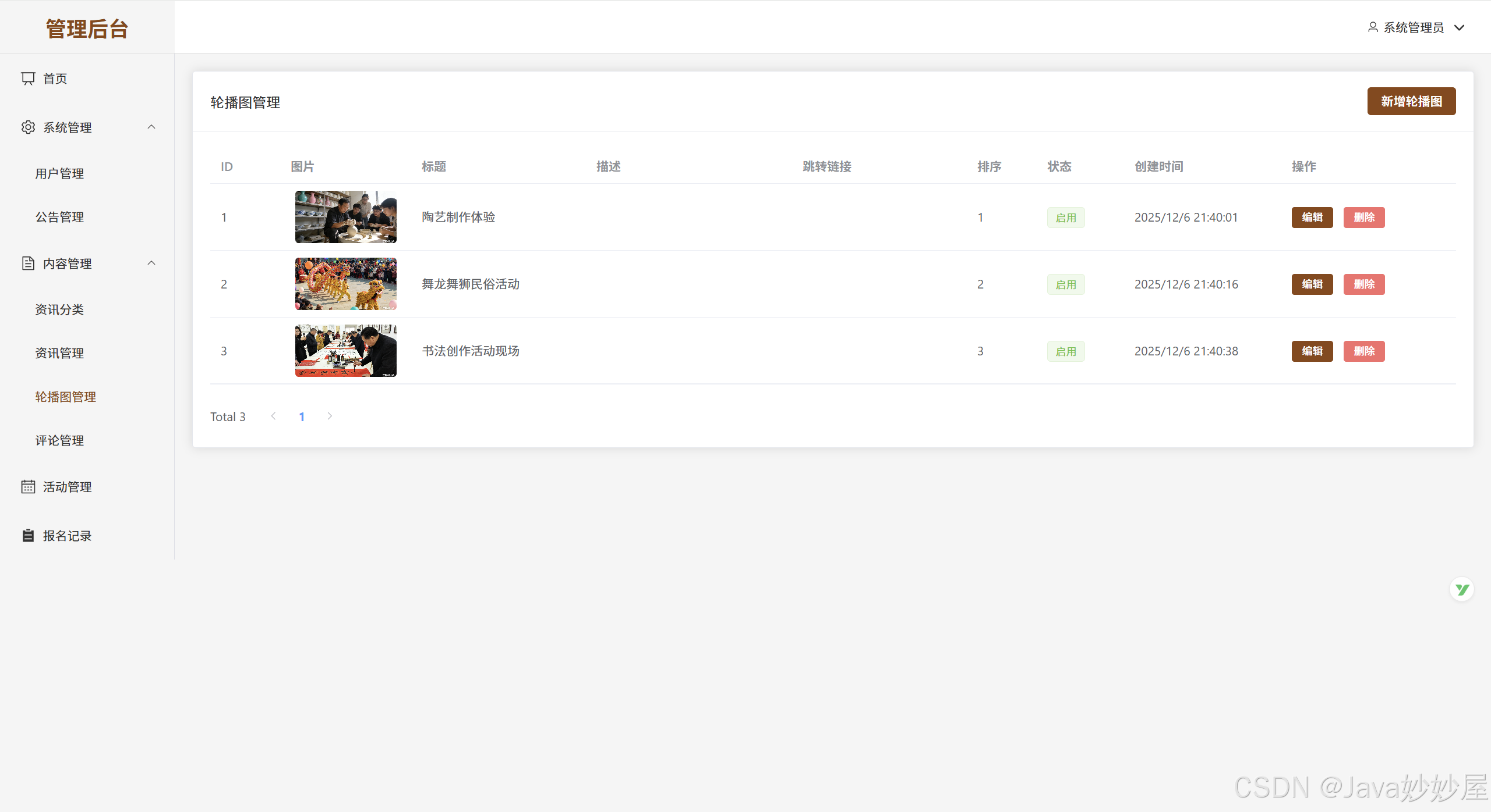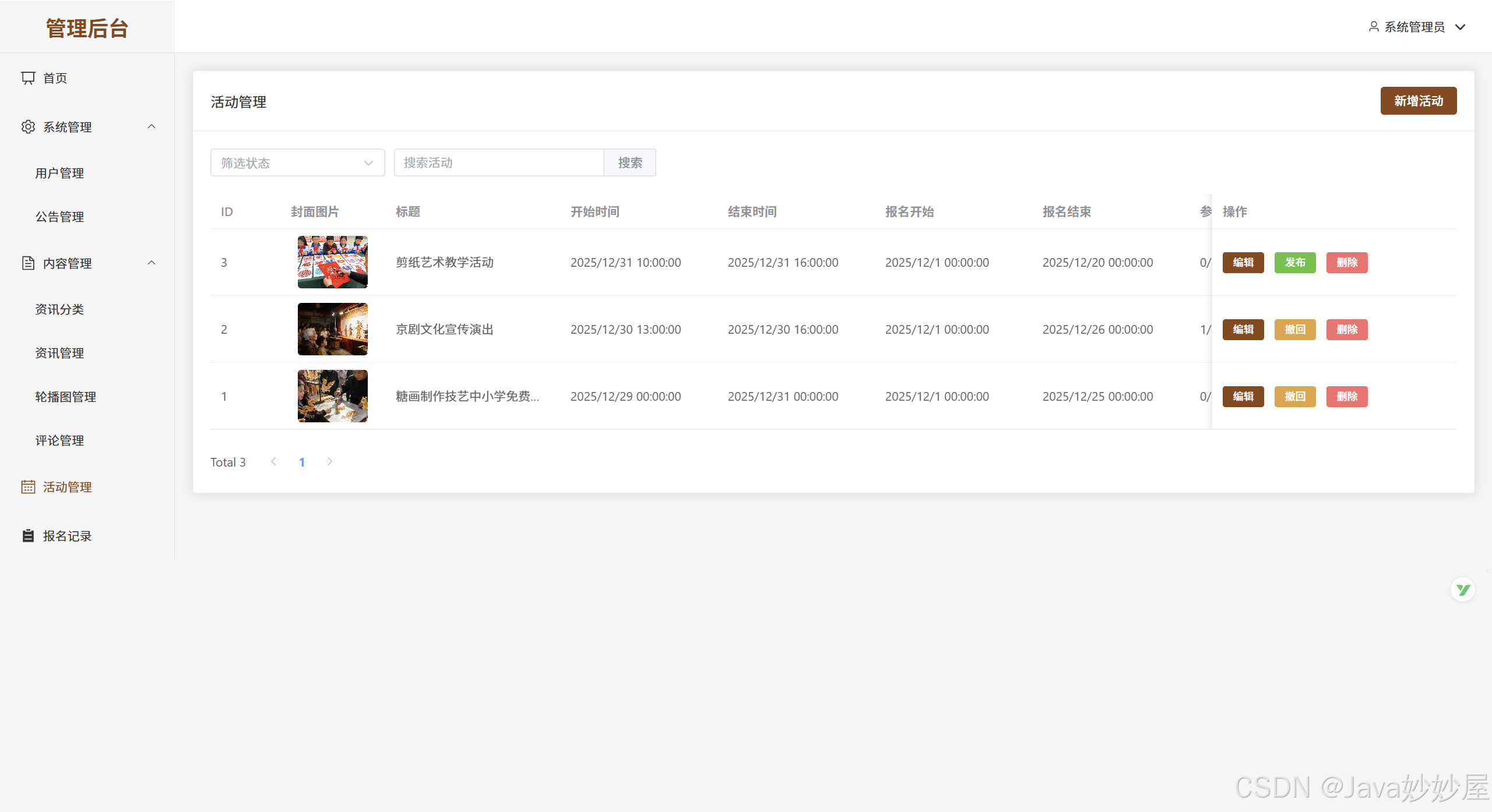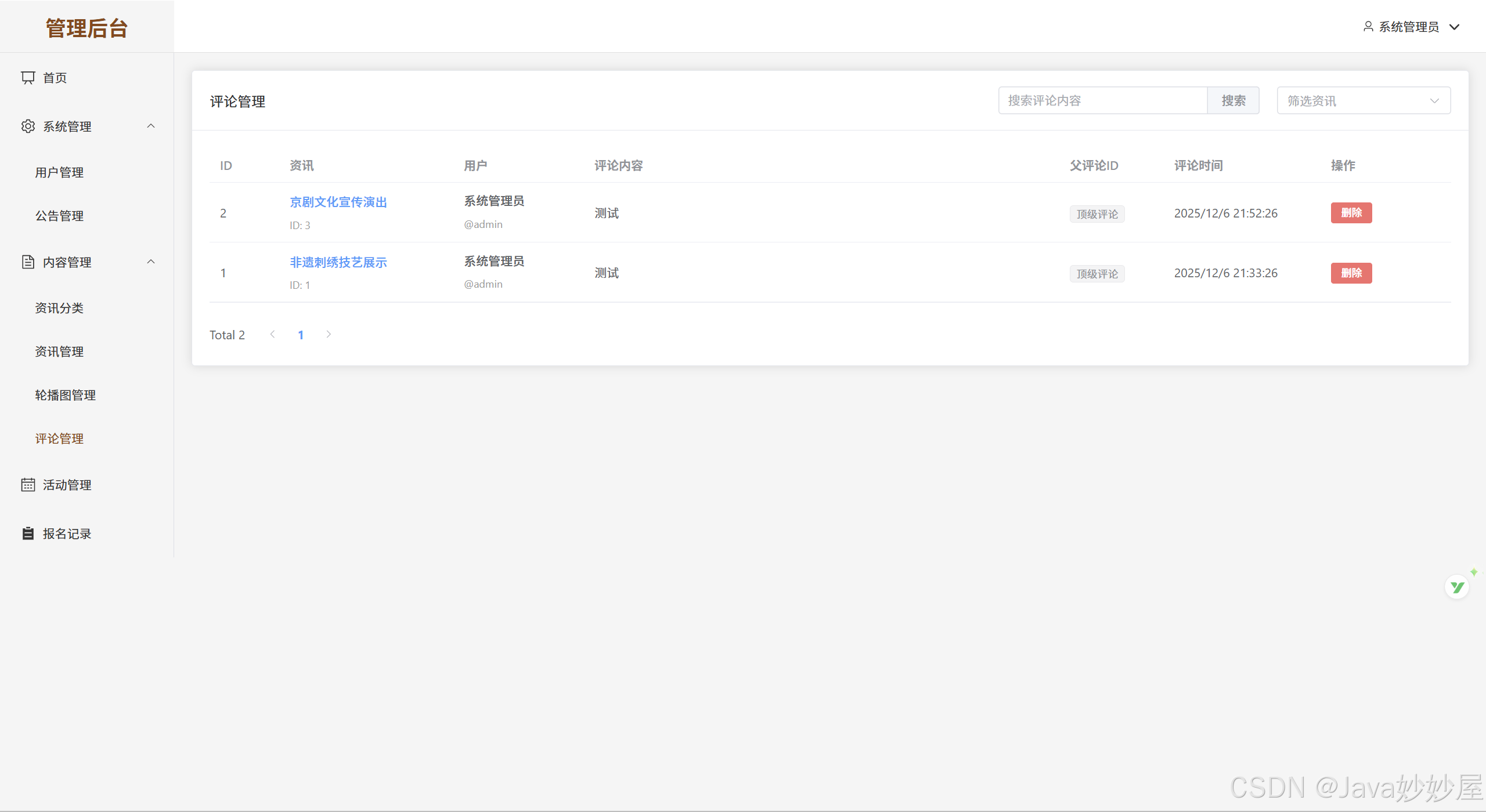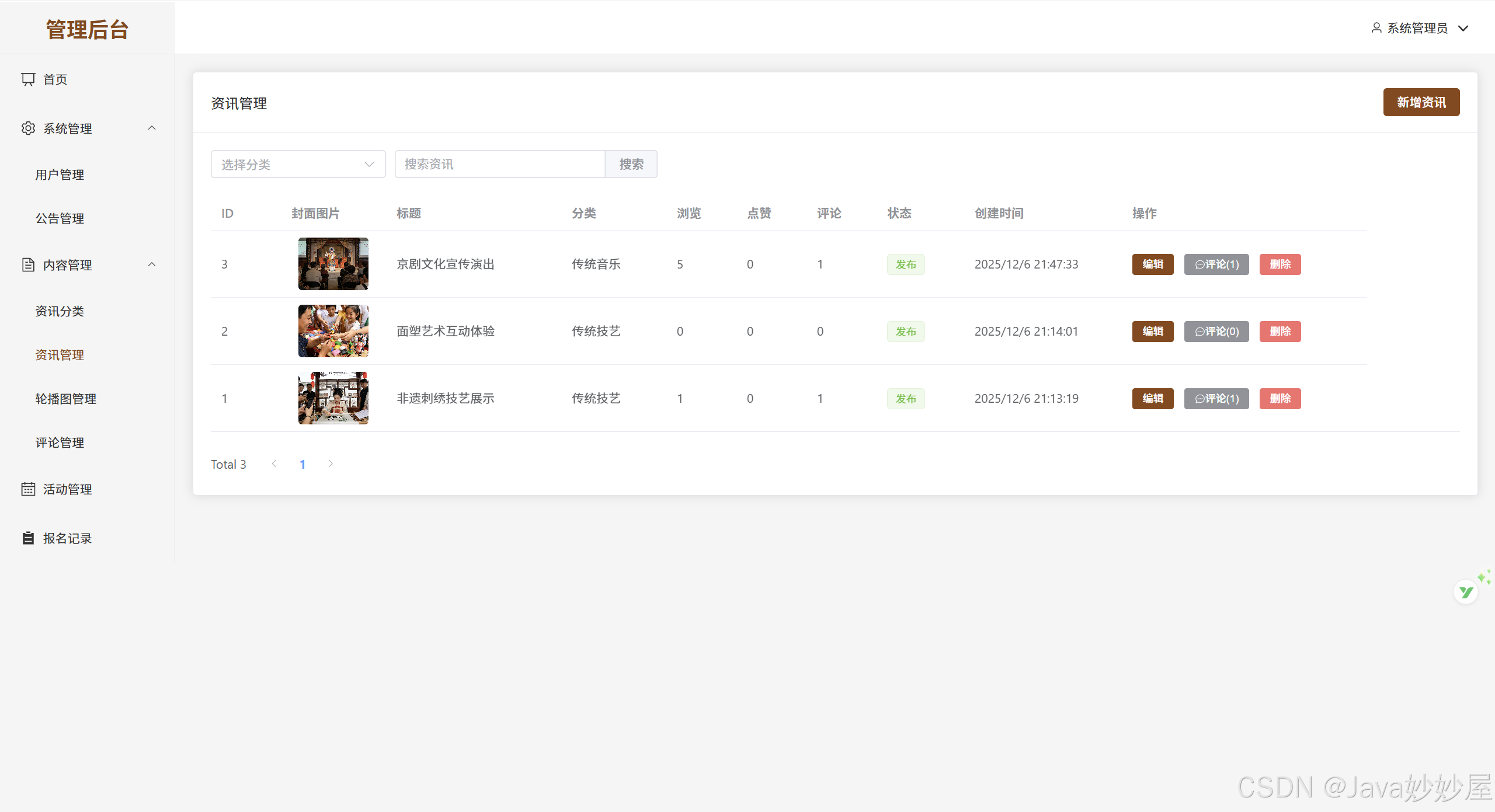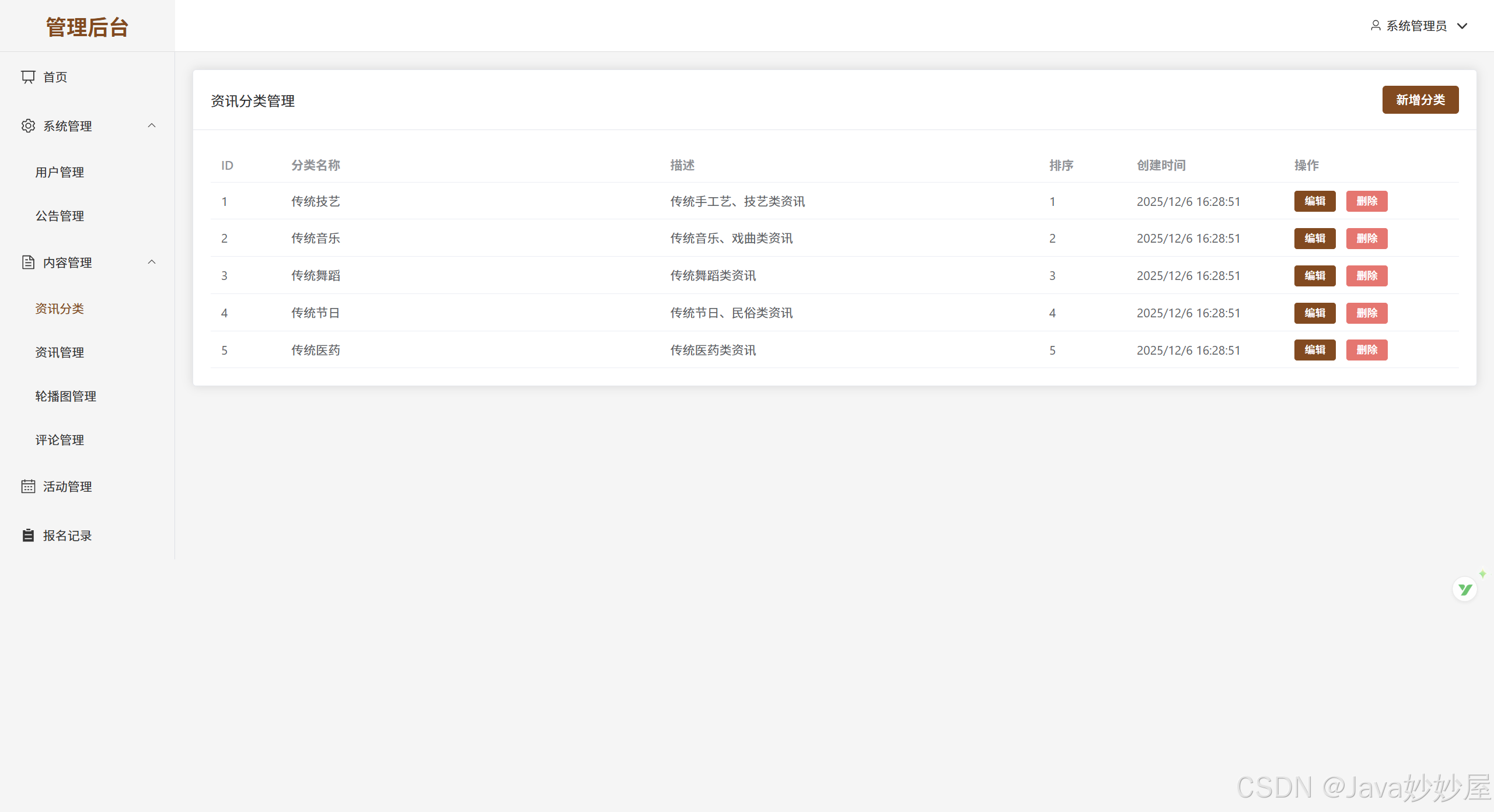 基于Spring Boot 3.1.5 + MyBatis-Plus 3.5.8 + Vue3 + Element-Plus + MySQL 开发的非遗文化宣传网站。