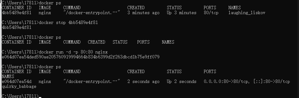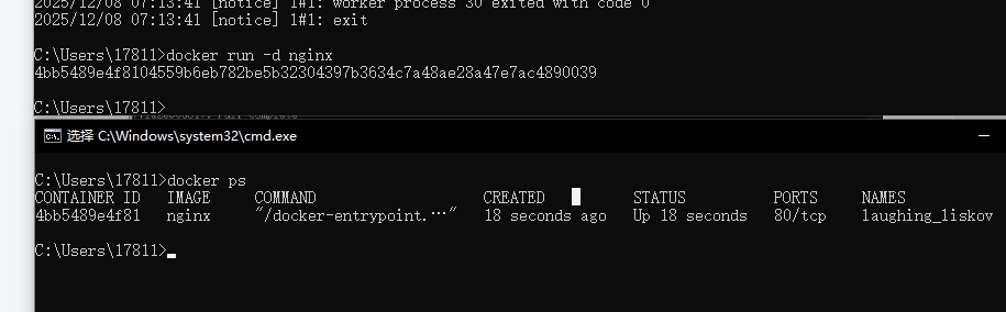 (如果nginx镜像不存在,则会自动执行pull操作下载一个)