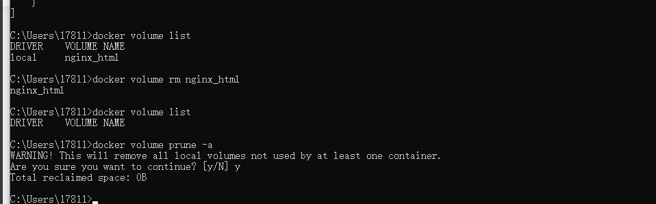docker volume prune -a(删除没有绑定仓库的所有挂载卷)