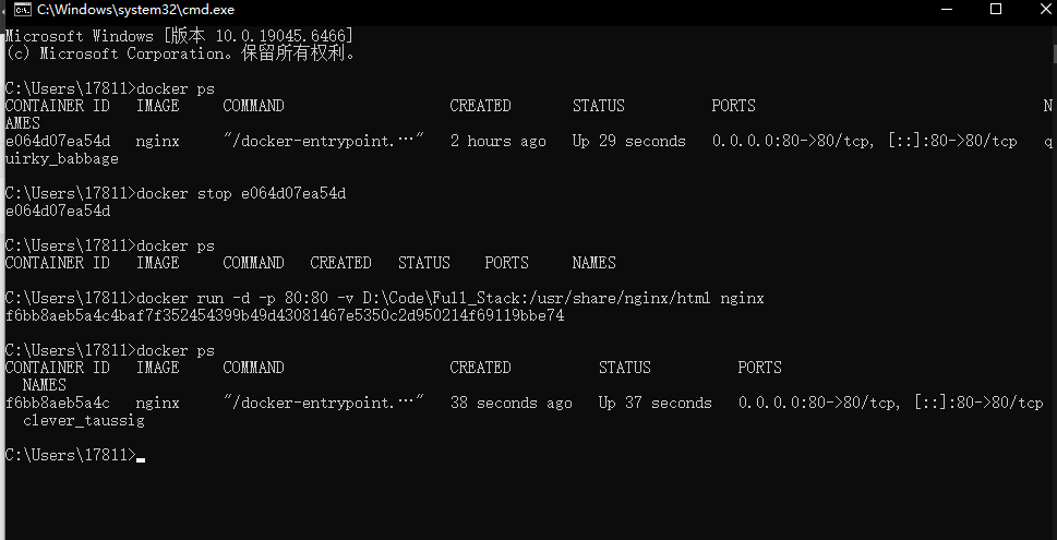 docker run -d -p 80:80 -v D:\Code\Full_Stack:/usr/share/nginx/html nginx