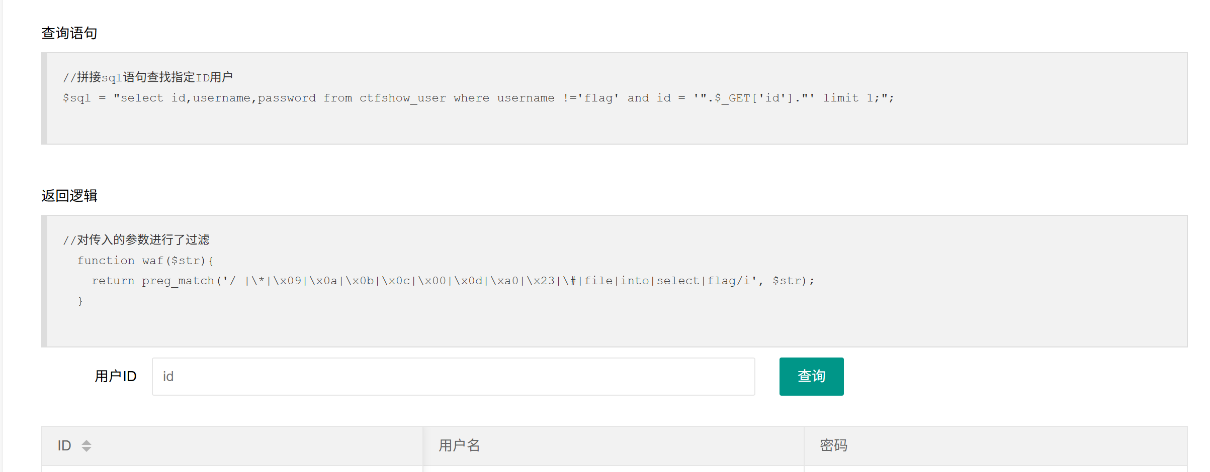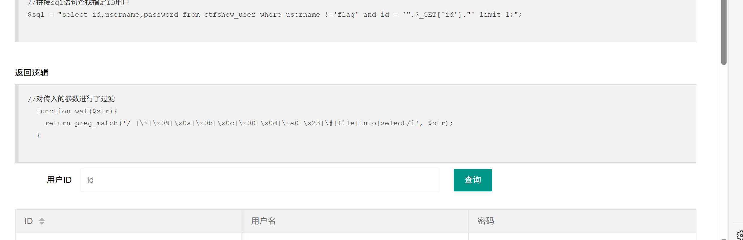 url = "http://b09bf58f-ff2b-4051-b7d8-04d39e805de7.challenge.ctf.show/select-waf.php"
