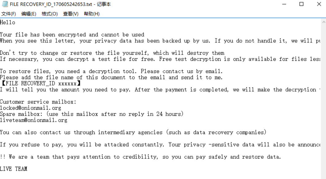 - 上机发现资料文件被加密,后缀名为 LIVE