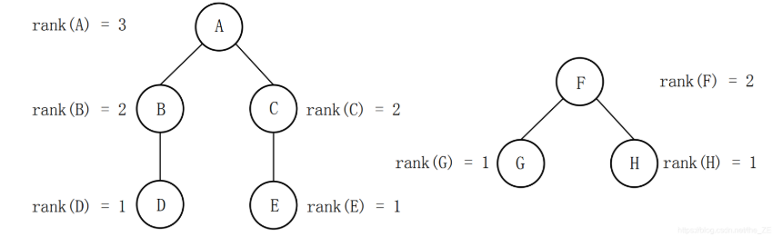if(rank[x]==rank[y]) rank[y]++; // 如果 x 的高度和 y 的高度相同,则令 y 的高度加1