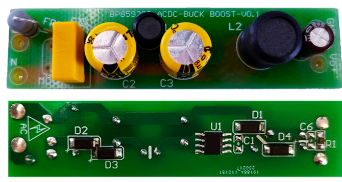 电机驱动辅助电源 架构:AC→整流滤波→BP85928D→5V→电机驱动 IC/MCU功能:为驱动 IC、电流采样与保护电路供电要点:宽压输入,过流 / 过温保护,抗干扰强器件:TVS、共模电感、续流二极管、输出电容